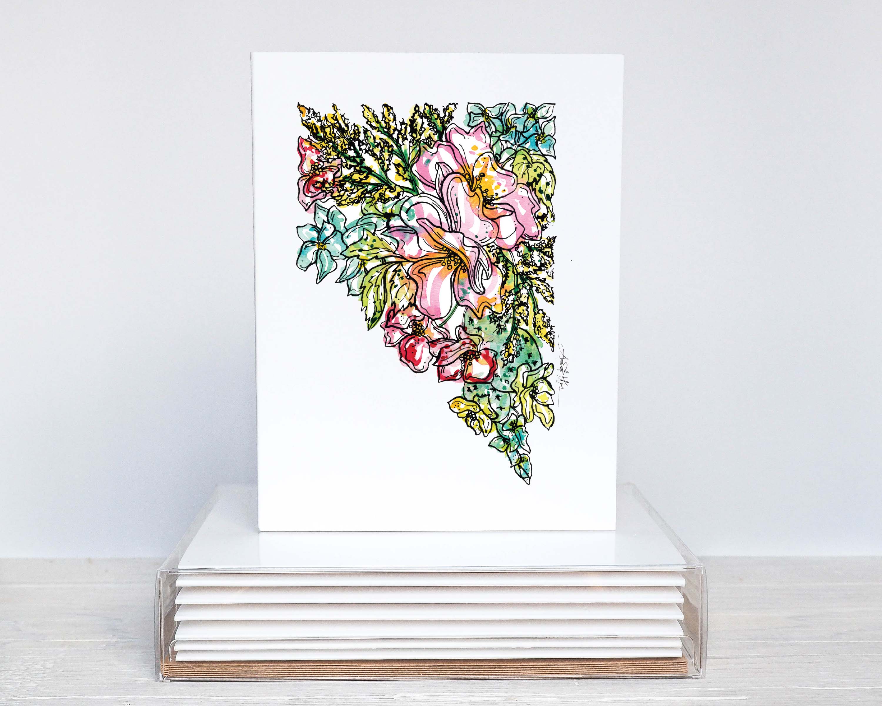 - Boxed set of 8 notecards, 8 kraft envelopes, and 8 envelope closure stickers