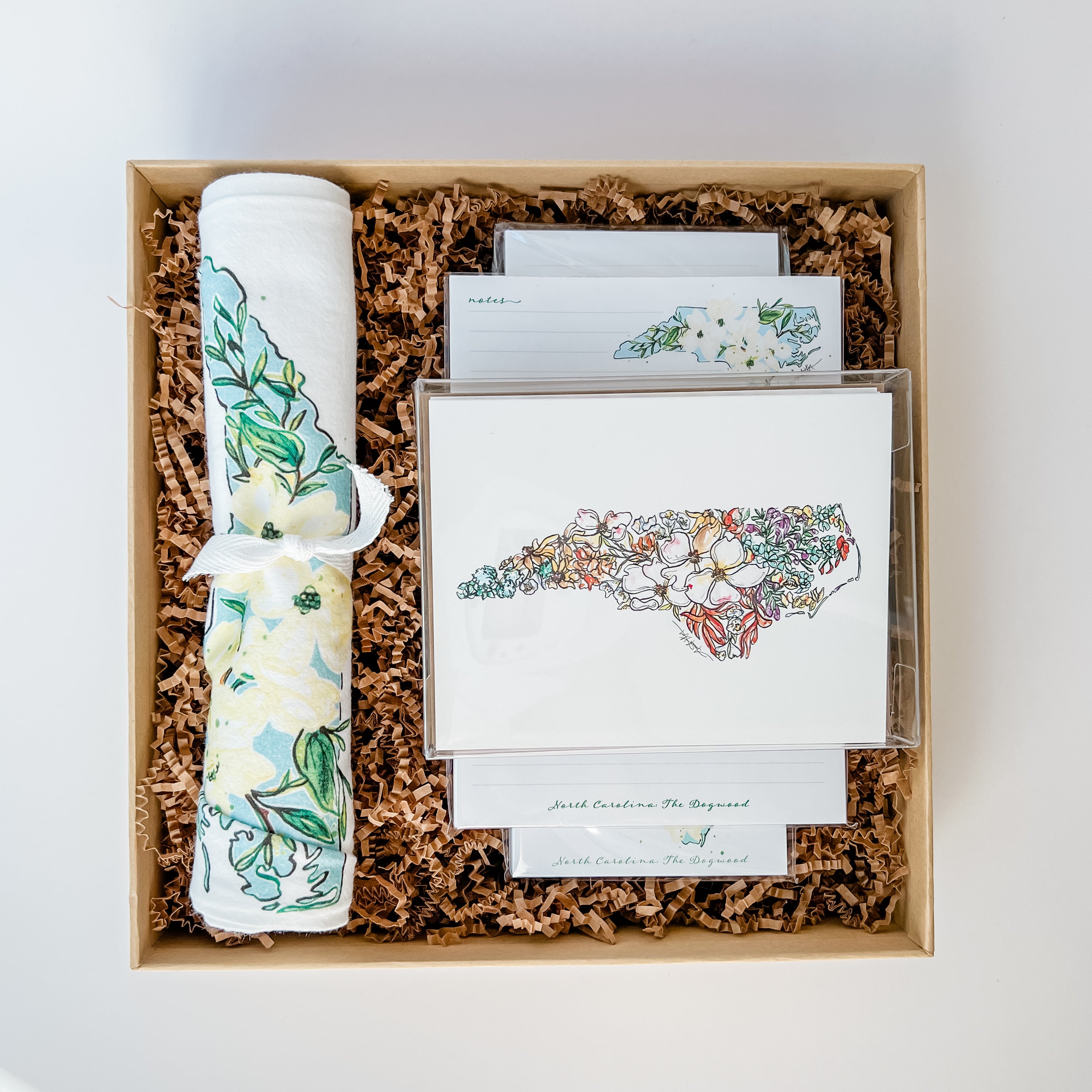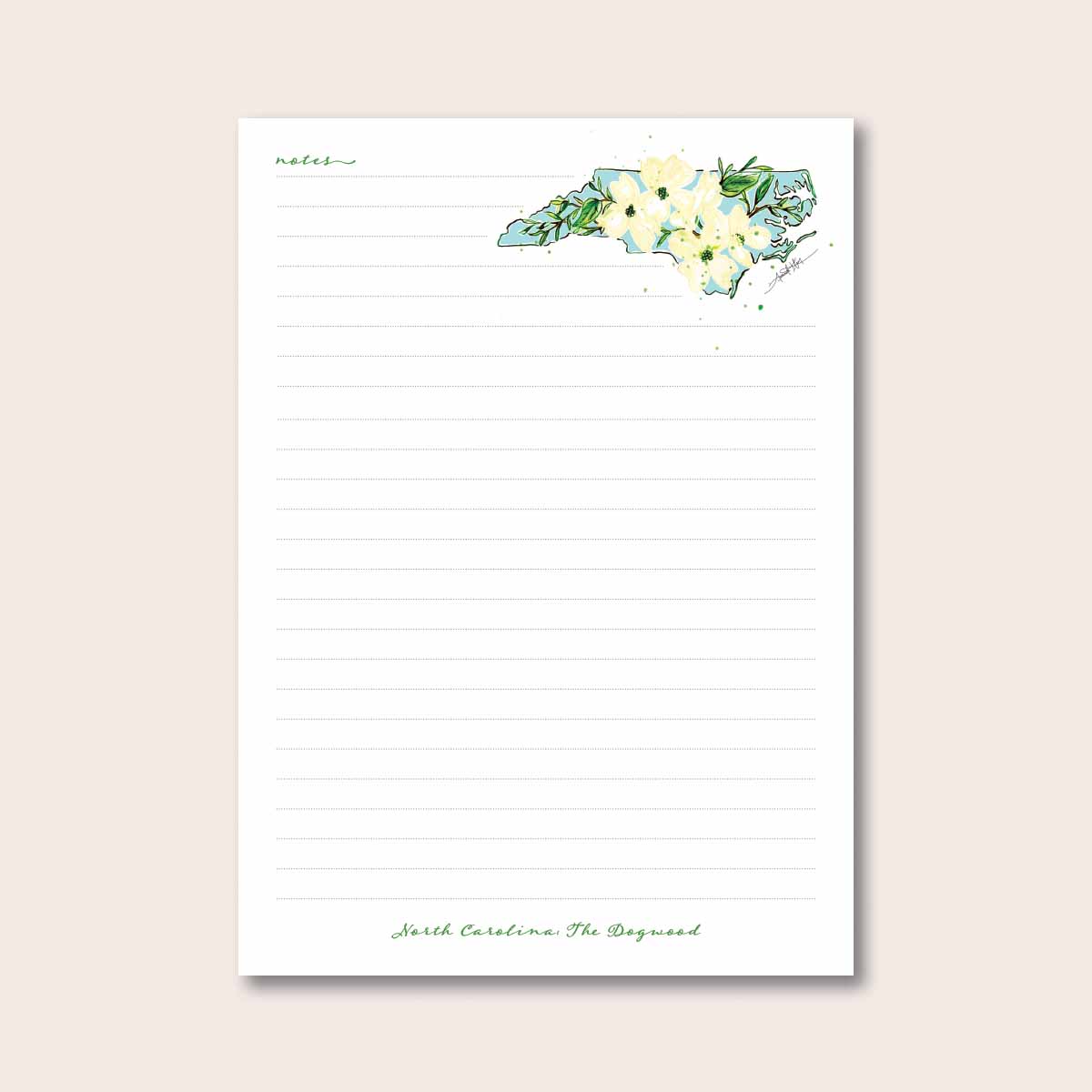 ✨ Flour Sack Towel, Desk Notepad, and Refrigerator Notepad all feature the North Carolina State Flower, the Dogwood.