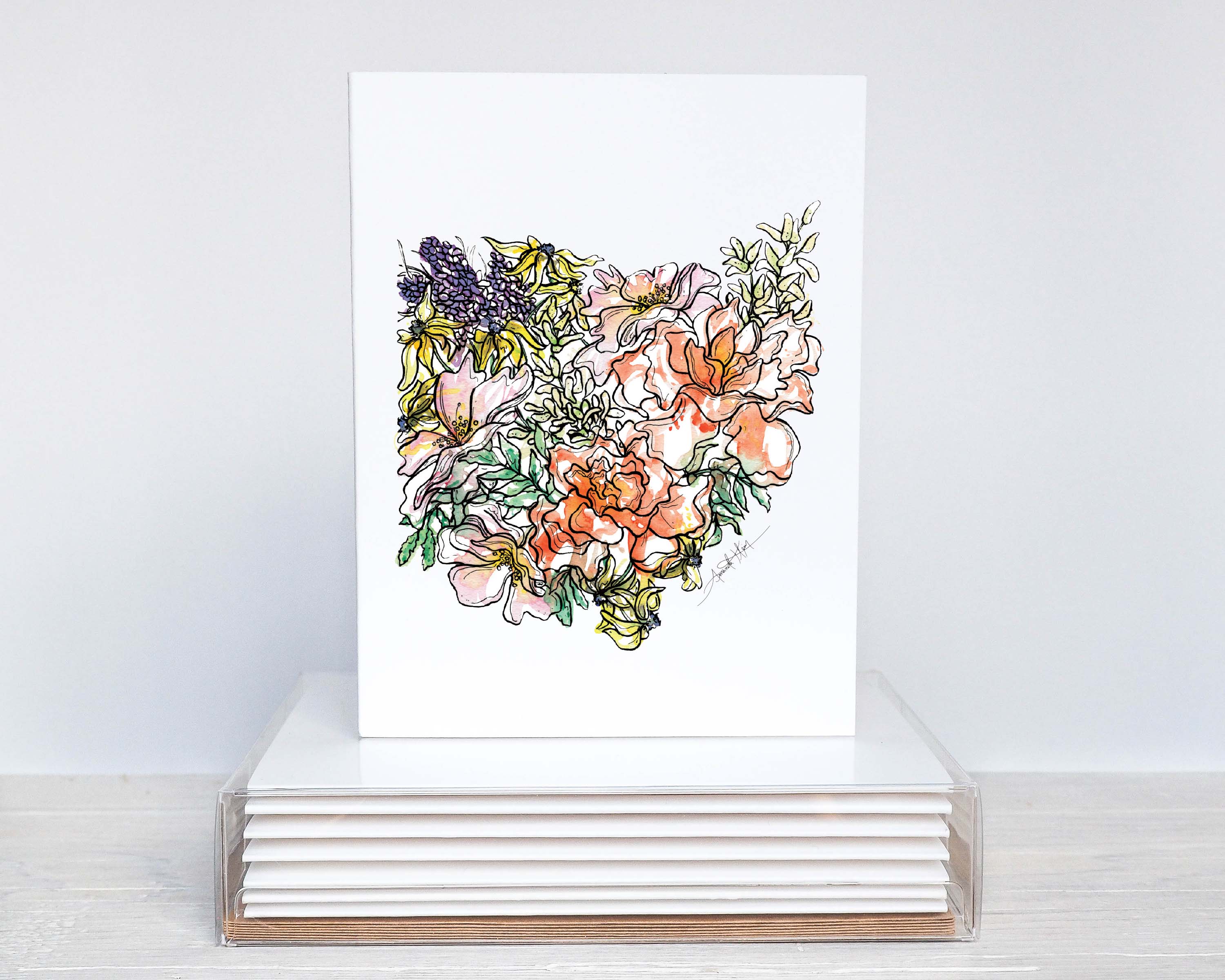 - Boxed set of 8 notecards, 8 kraft envelopes, and 8 envelope closure stickers