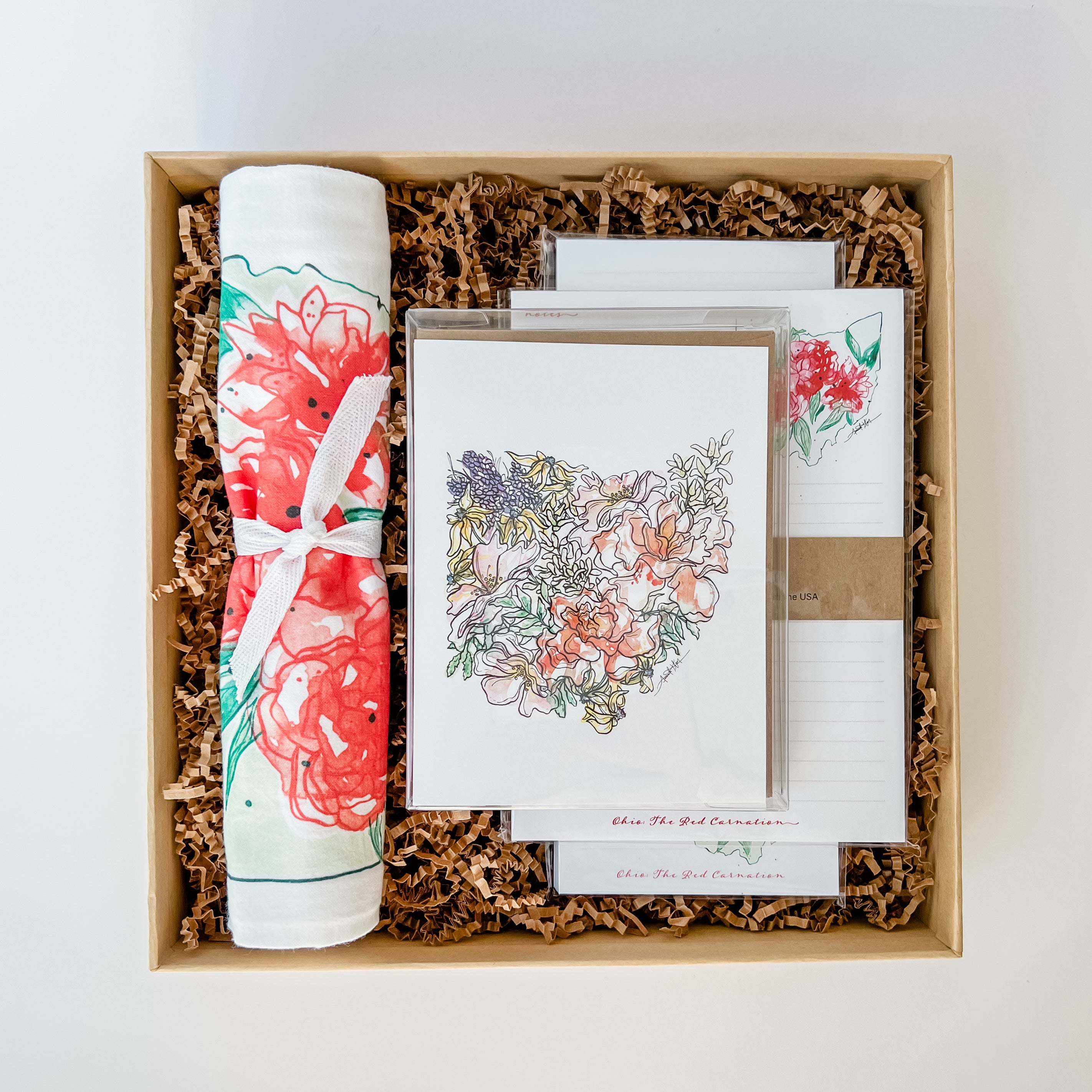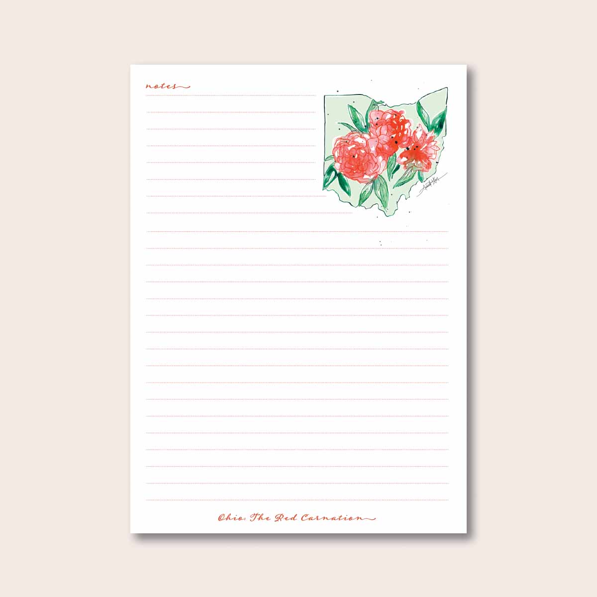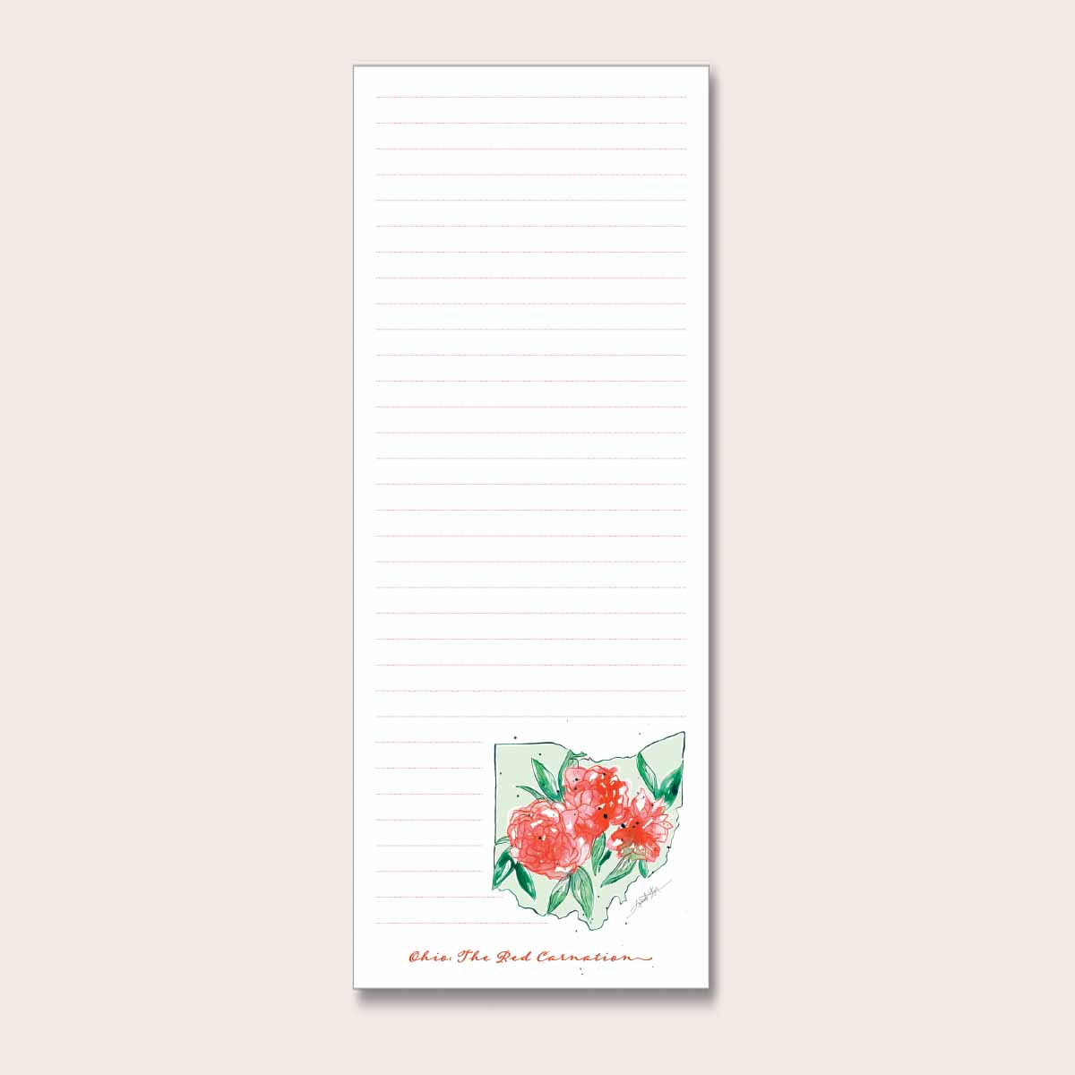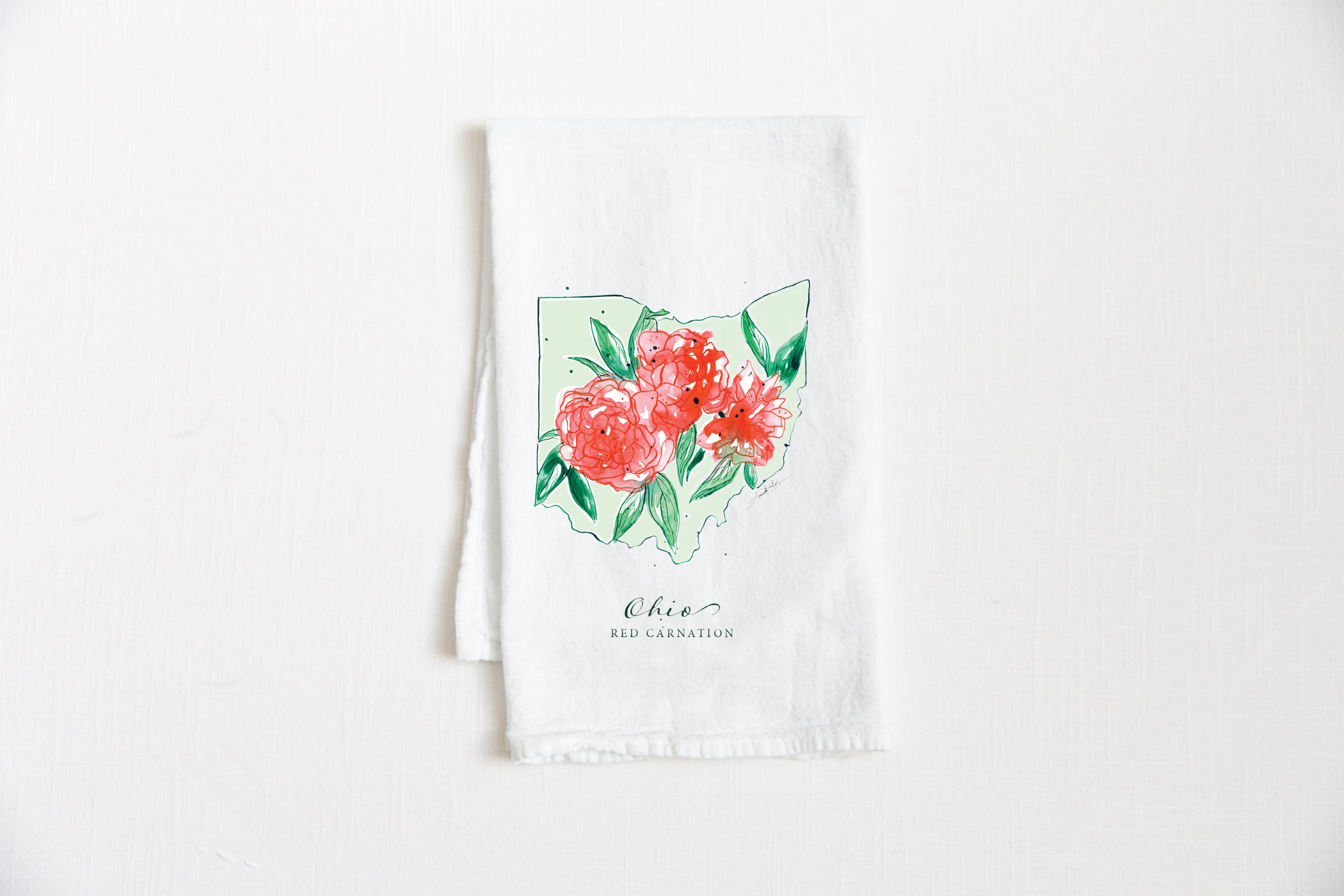 ✨ Flour Sack Towel, Desk Notepad, and Refrigerator Notepad all feature the Ohio State Flower, the Red Carnation.