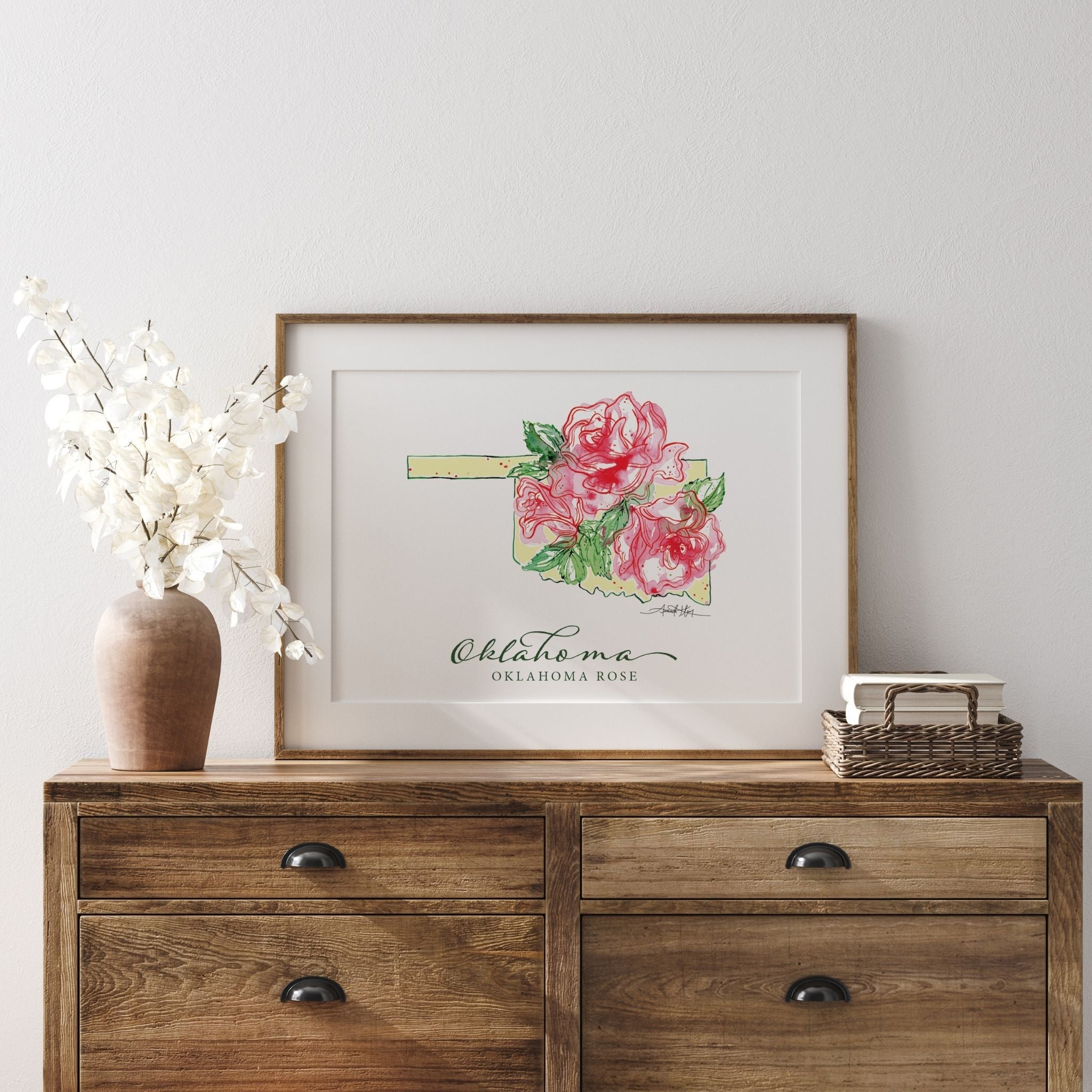 Featuring the official state flower of Oklahoma, the Rose.