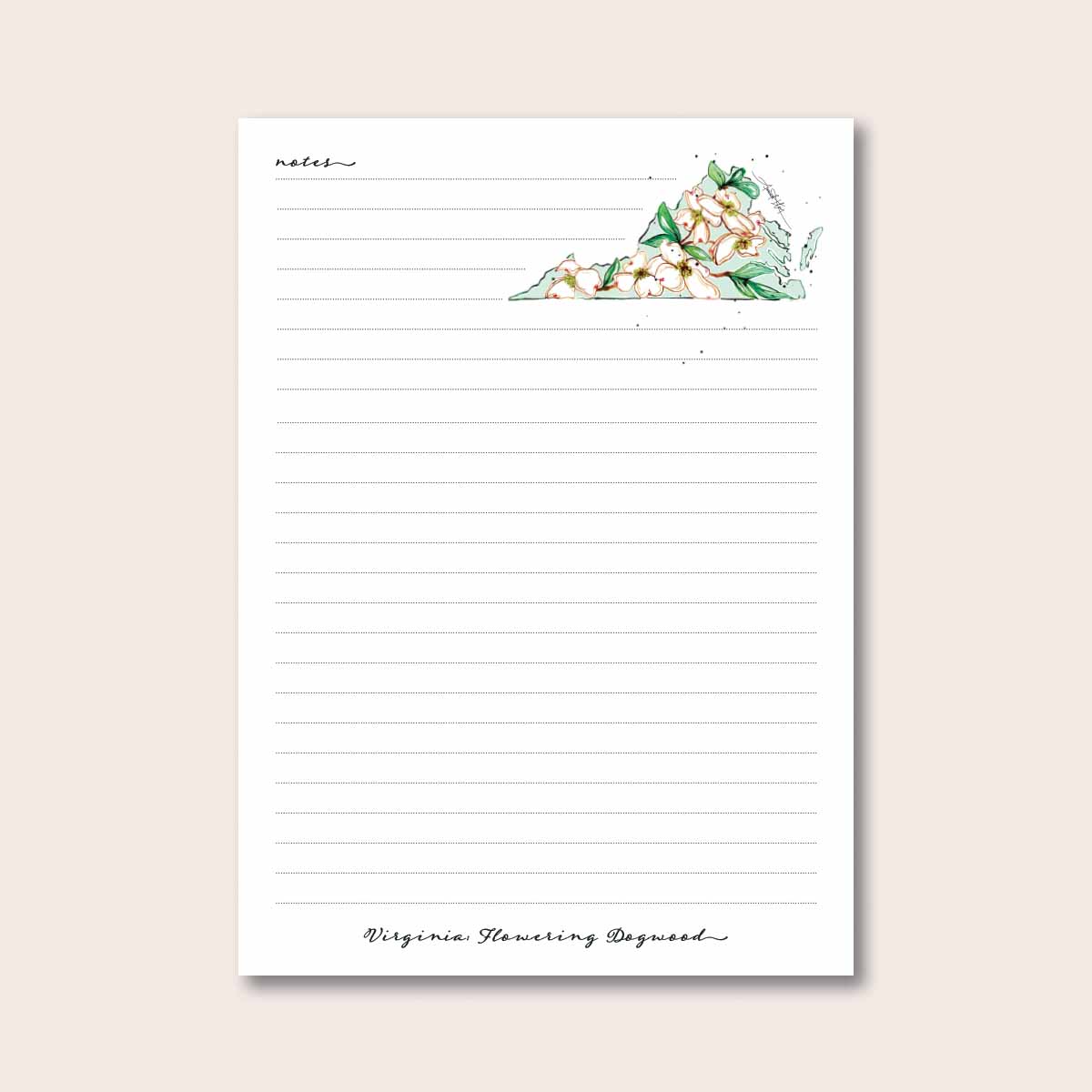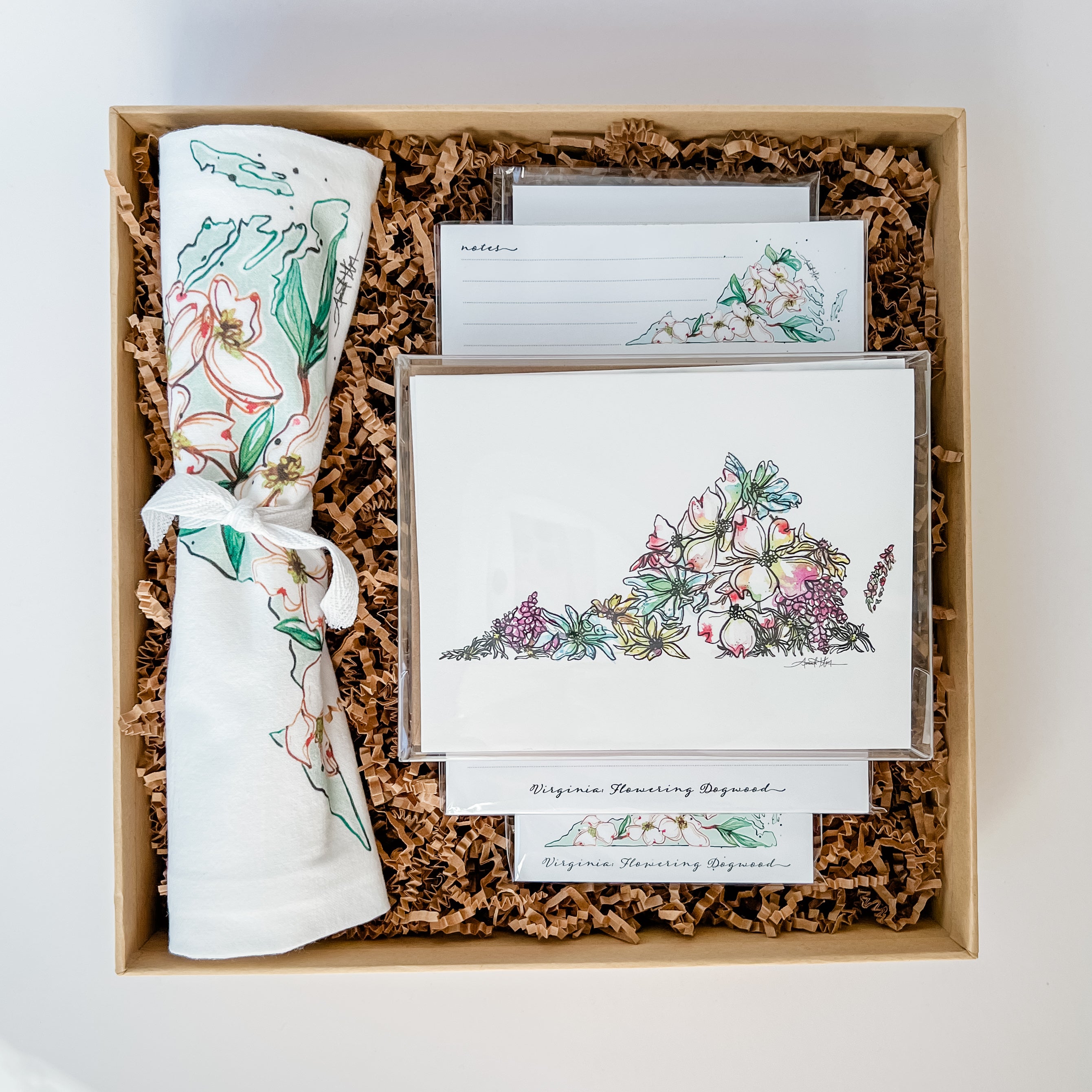 ✨ Flour Sack Towel, Desk Notepad, and Refrigerator Notepad all feature the Virginia State Flower, the Flowering Dogwood.