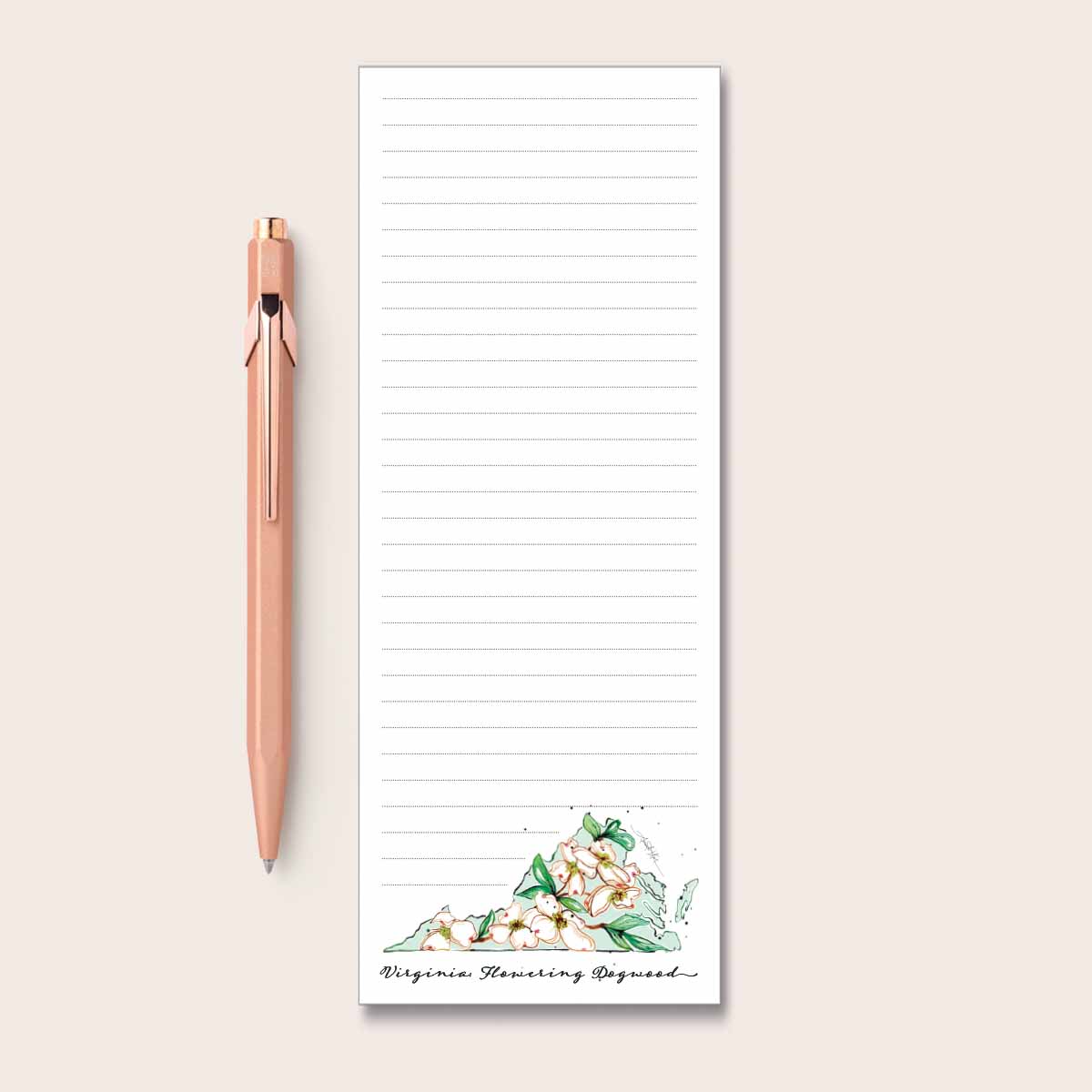 - Desk Notepad Features: 100 dotted-line sheets on 5” x 7” paper with a sturdy chipboard backing.