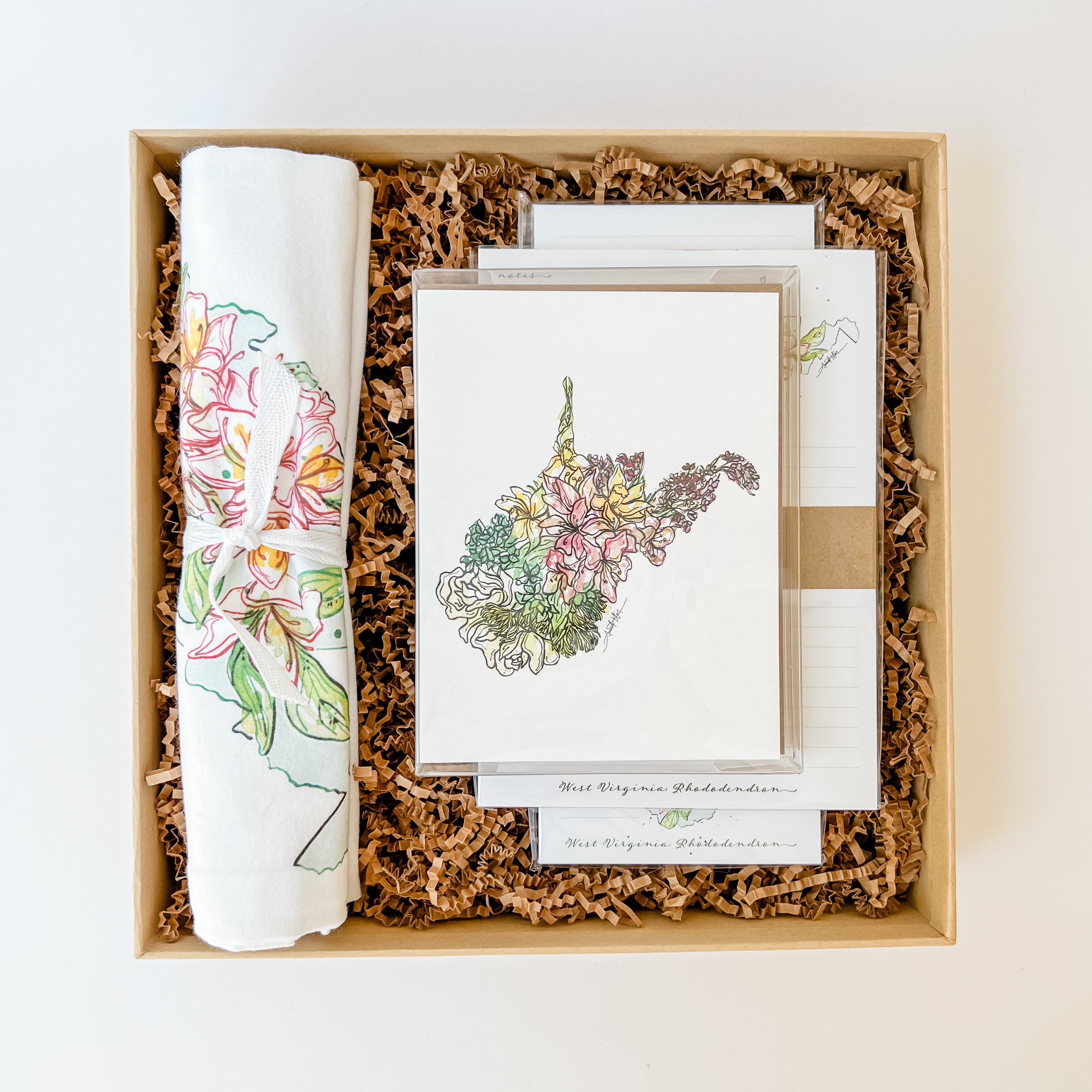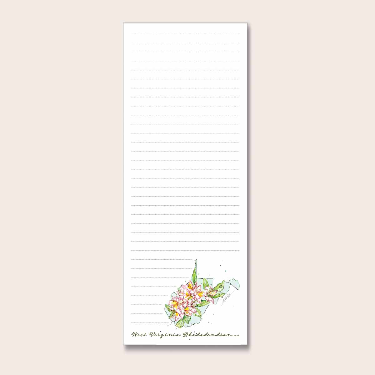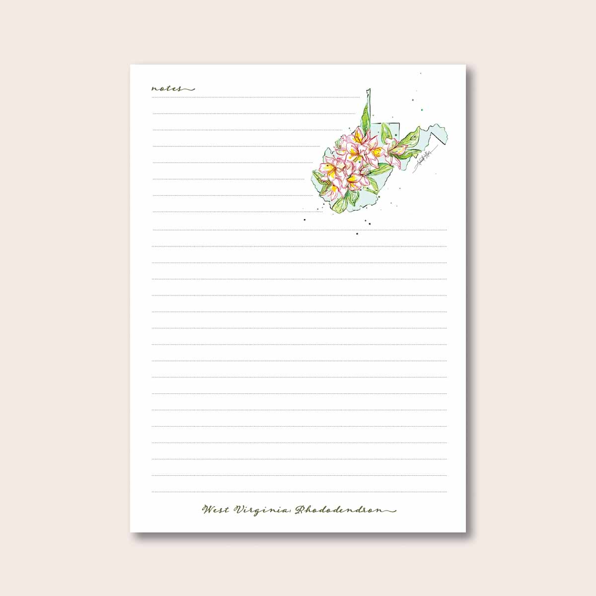 ✨ Flour Sack Towel, Desk Notepad, and Refrigerator Notepad all feature the West Virginia State Flower, the Rhododendron.
