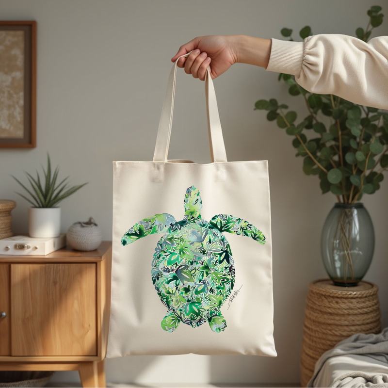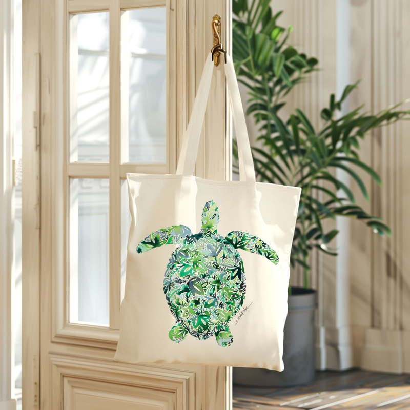 Live on Oak Island where sea turtles lay their nests , so turtles are important to us. The art is wonderful, the bag is great. Like the size of the tote and that there are 2 handles. Easier to use. Also like that it is not a flat bag and the gusset allows extra room. Highly recommend