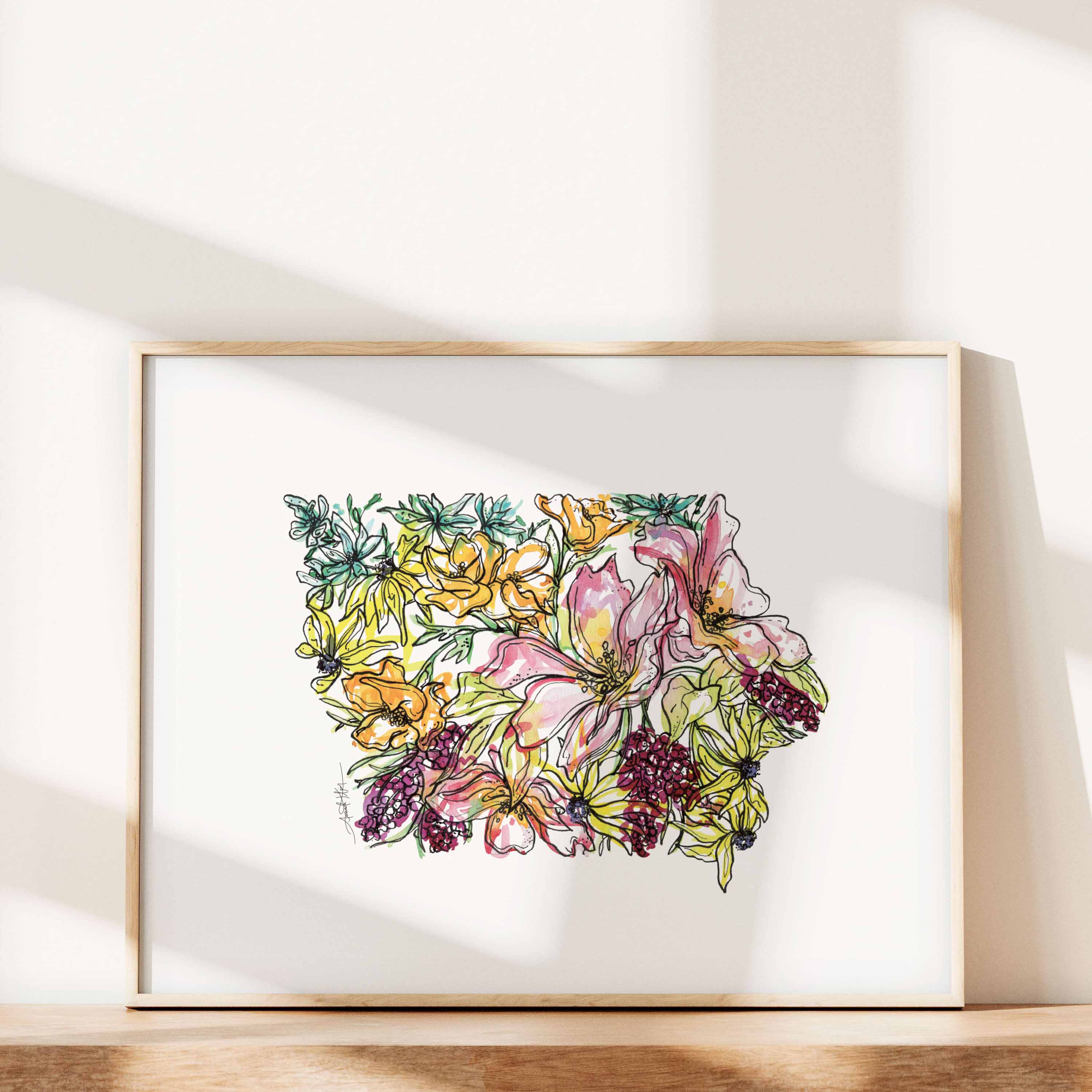 Iowa Wildflowers State Art Print