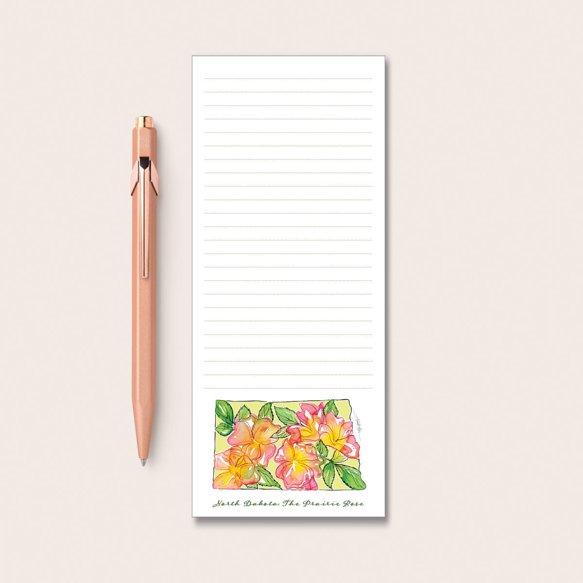 • Refrigerator Notepad Features: 50 dotted-line sheets on 3 ½ “ x 9” paper. Magnet attached to the sturdy chipboard back for hanging.