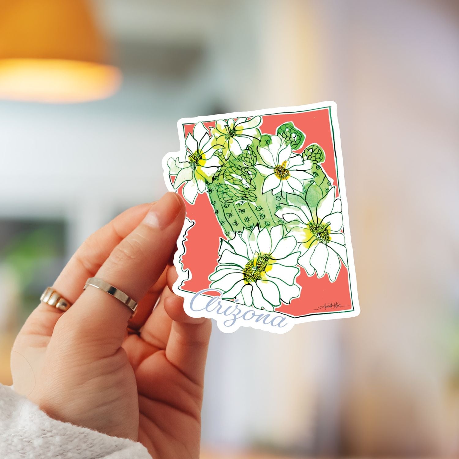 Now available in our beautiful State Flower design! These high quality vinyl decals showcase Amanda Klein’s whimsical watercolor artwork beautifully. Make your water bottle, laptop, car, or any hard surface uniquely you.
