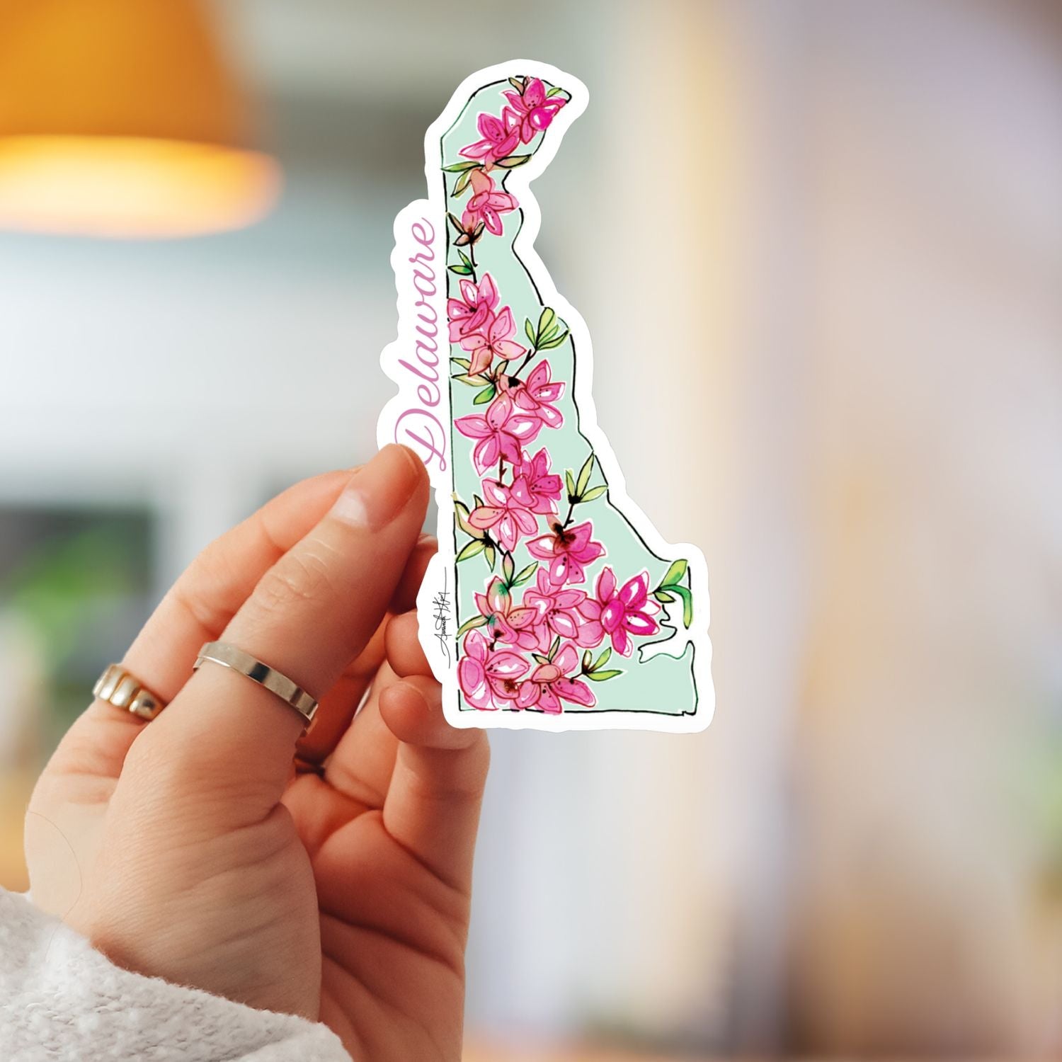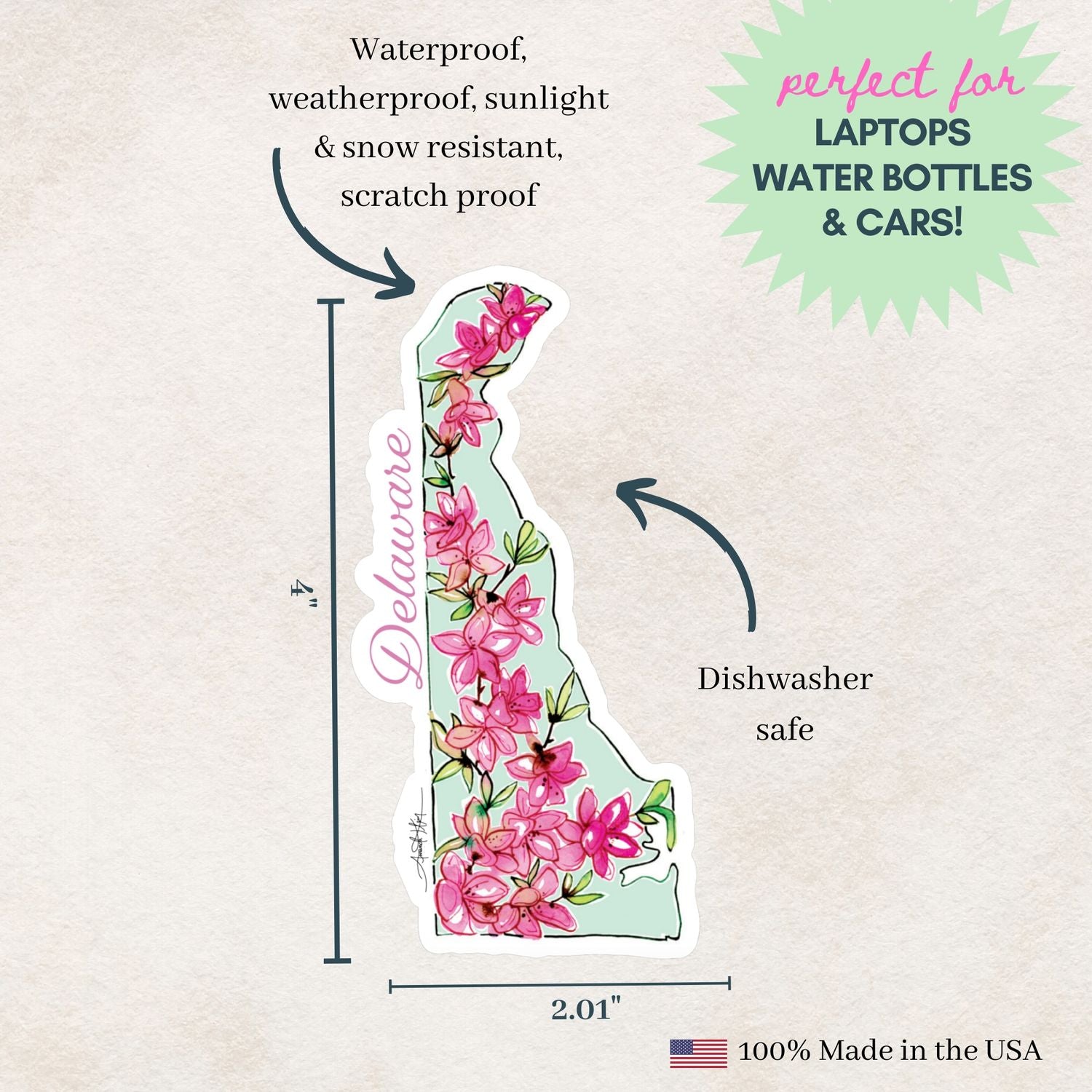Now available in our beautiful State Flower design! These high quality vinyl decals showcase Amanda Klein’s whimsical watercolor artwork beautifully. Make your water bottle, laptop, car, or any hard surface uniquely you.