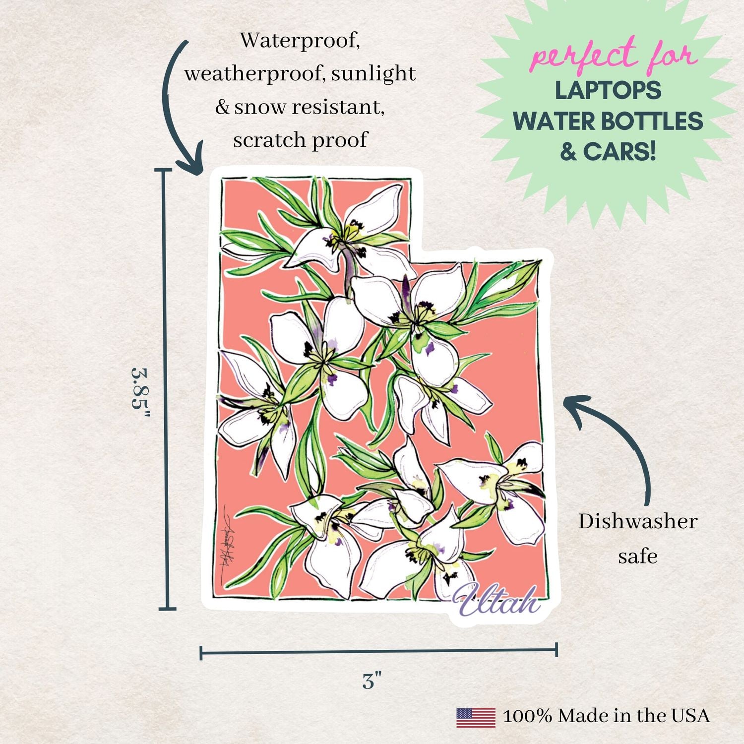 Now available in our beautiful State Flower design! These high quality vinyl decals showcase Amanda Klein’s whimsical watercolor artwork beautifully. Make your water bottle, laptop, car, or any hard surface uniquely you.