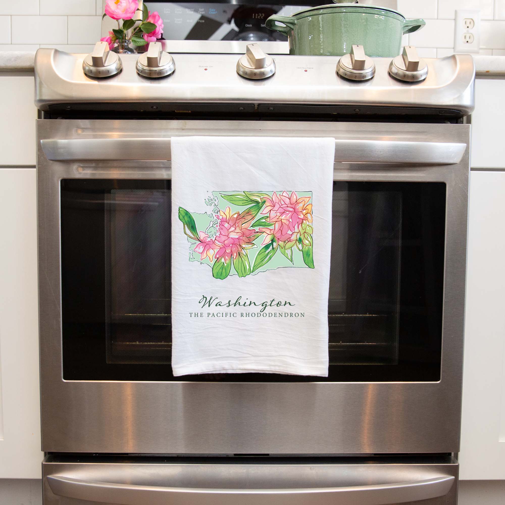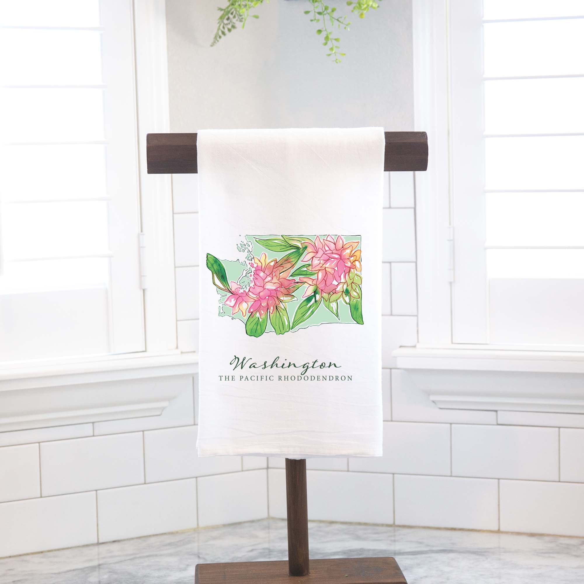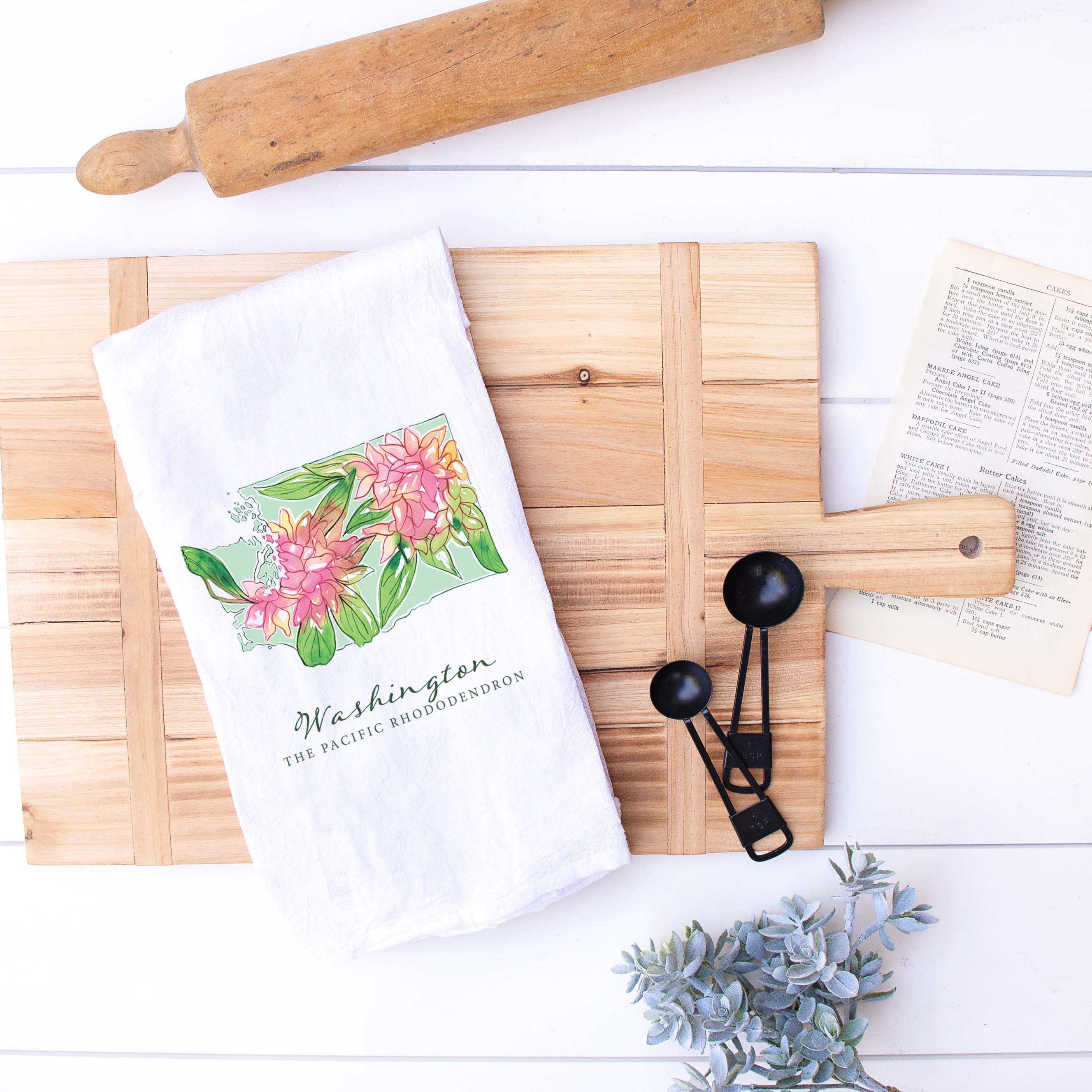 Featuring Washington's state flower, the Pacific Rhododendron, this high quality flour sack tea towel showcases Amanda Klein's whimsical watercolor and splattered design. A uniquely perfect gift for any hostess, bride, teacher, friend, or well-traveled loved one.