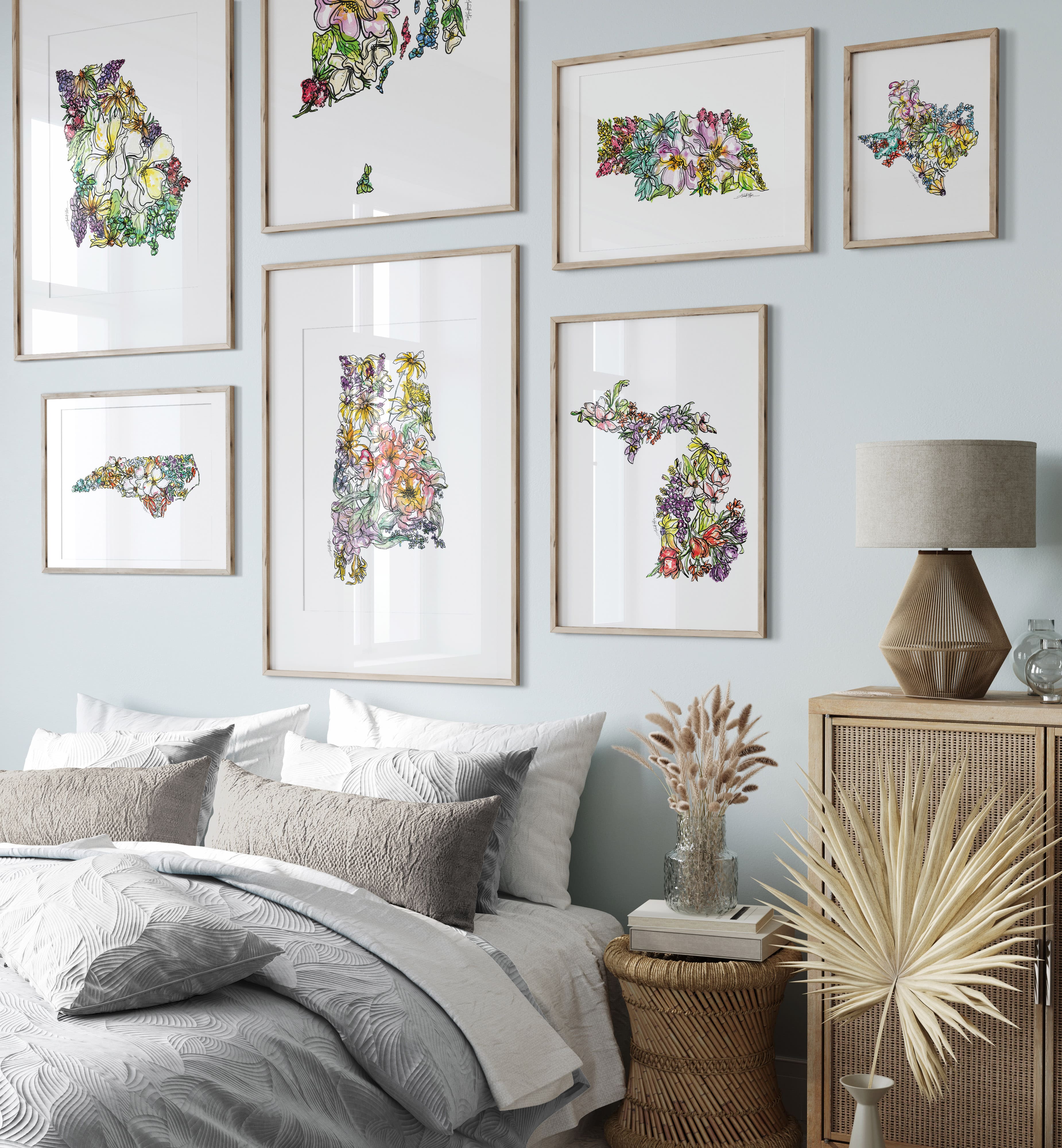 Featuring wildflowers specific to each individual state, these high quality fine art reproductions of Amanda Klein’s original artwork beautifully showcase her whimsical watercolor designs.  A uniquely perfect gift for any hostess, bride, holiday, teacher, friend or well traveled loved one.