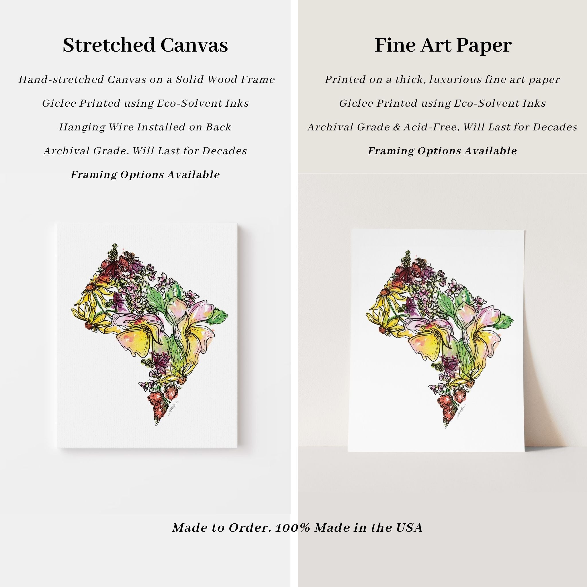 Original artwork created entirely by hand using watercolor and ink, by nationally recognized artist Amanda Klein. With over 9,000 five-star reviews, our artwork is trusted by collectors nationwide. All pieces are 100% made in the USA, printed to order, and giclée-printed using eco-solvent inks on archival-grade materials designed to last for decades. Orders ship within 2–5 business days.