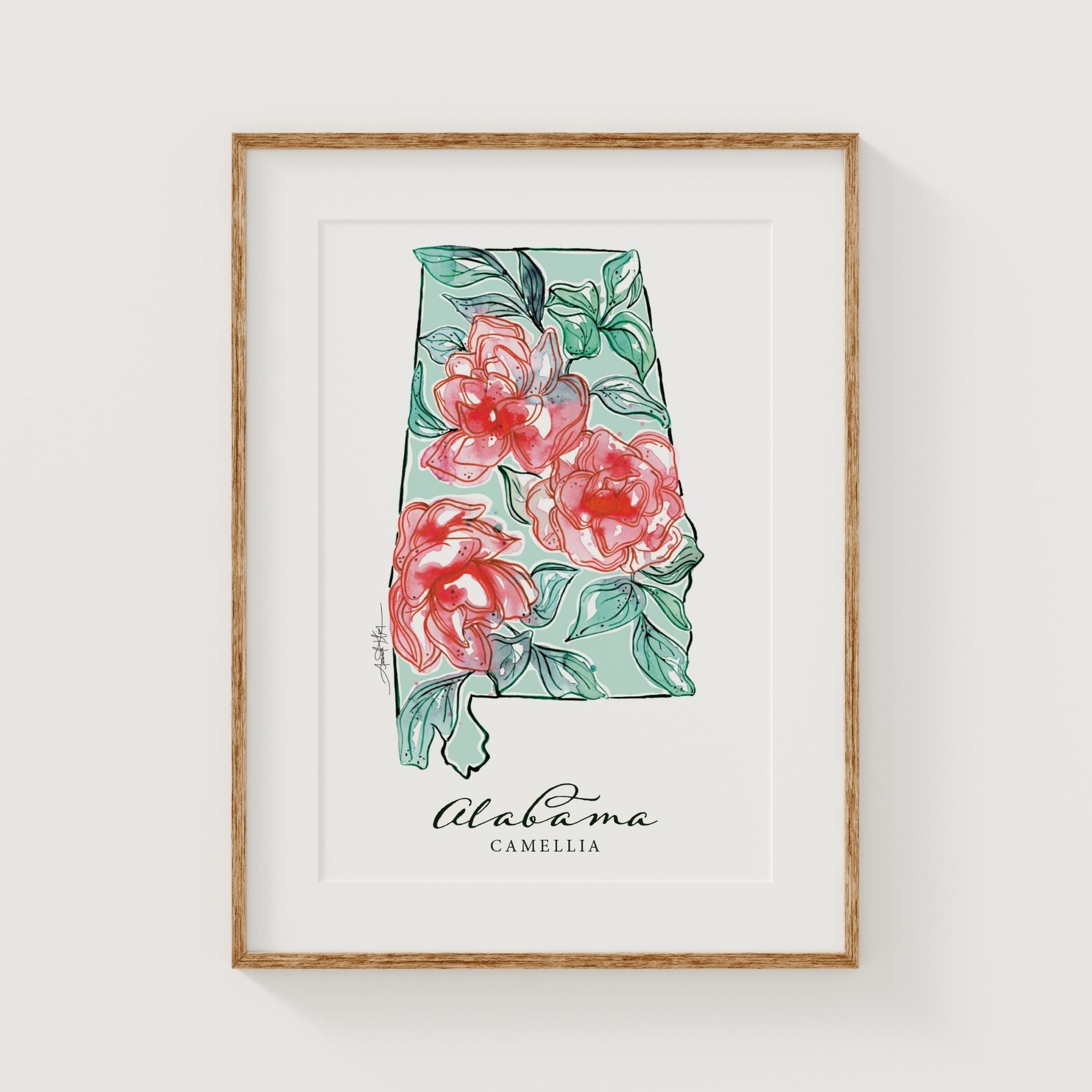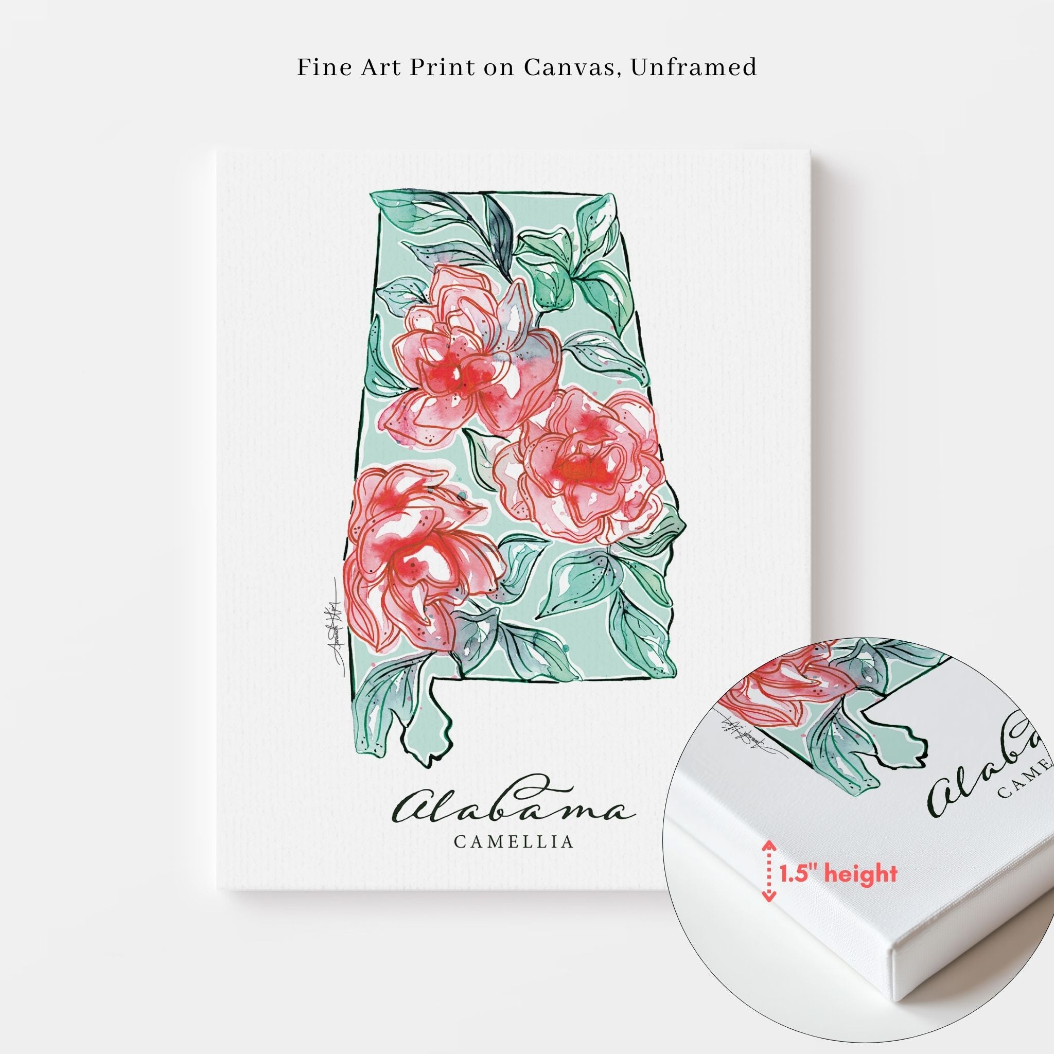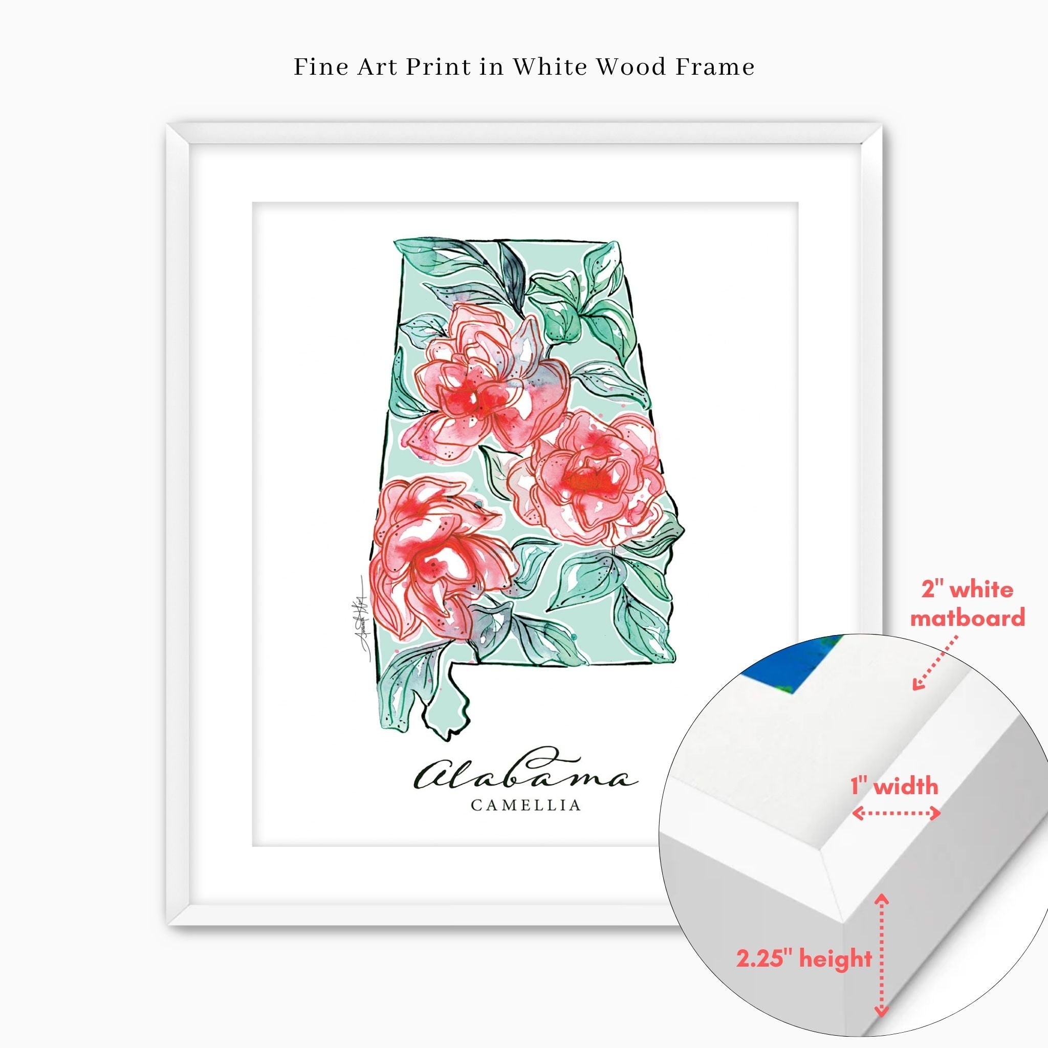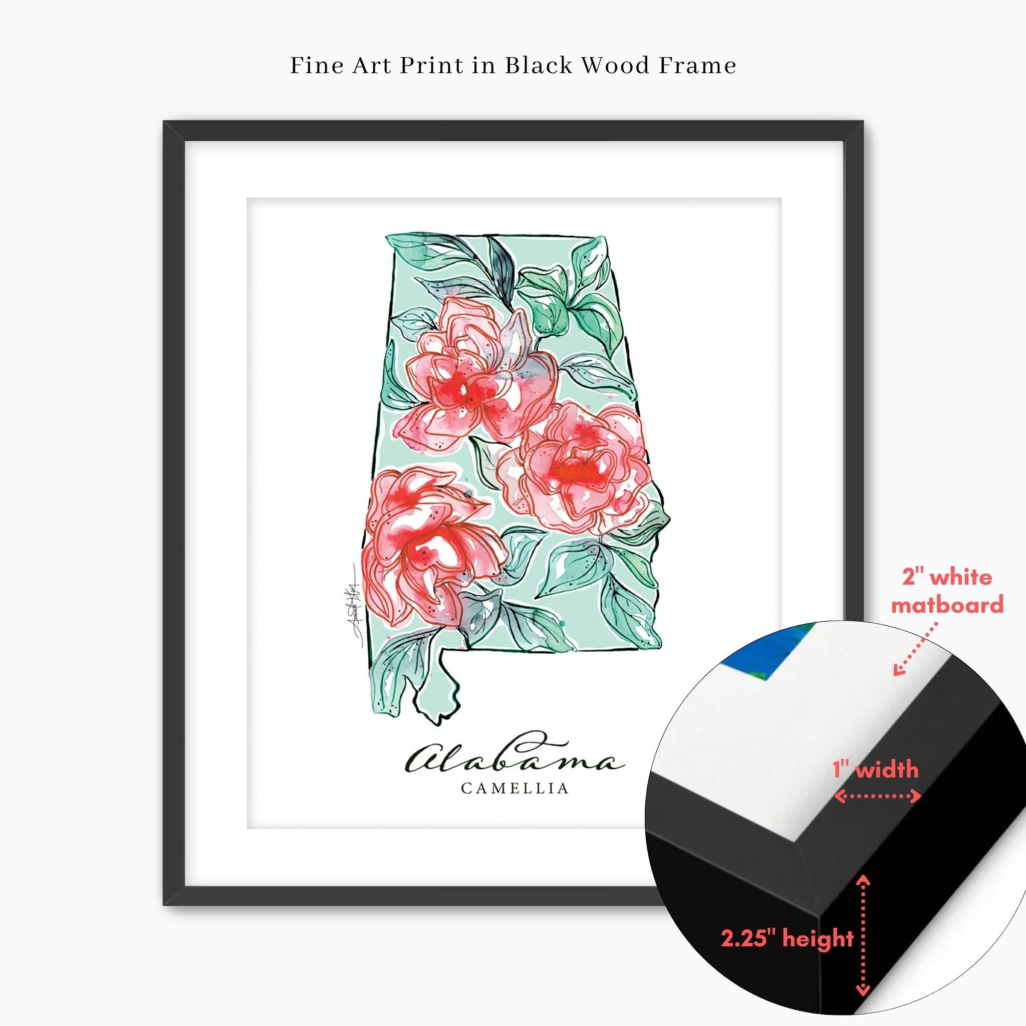 Featuring the official state flower of Alabama, the Camellia.