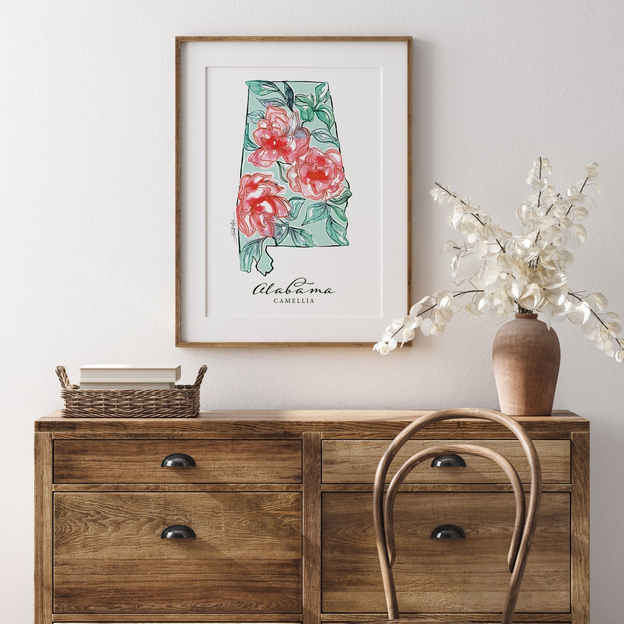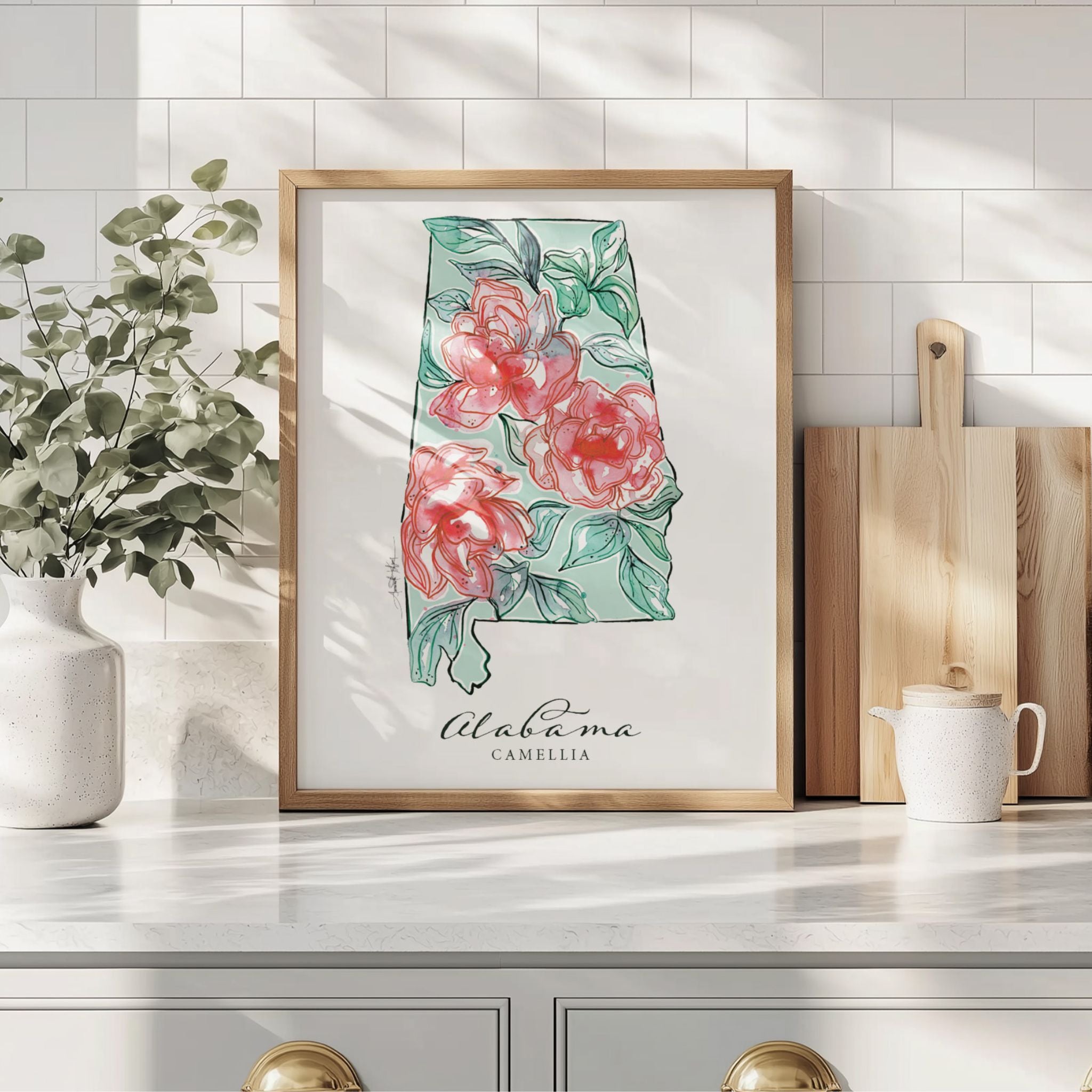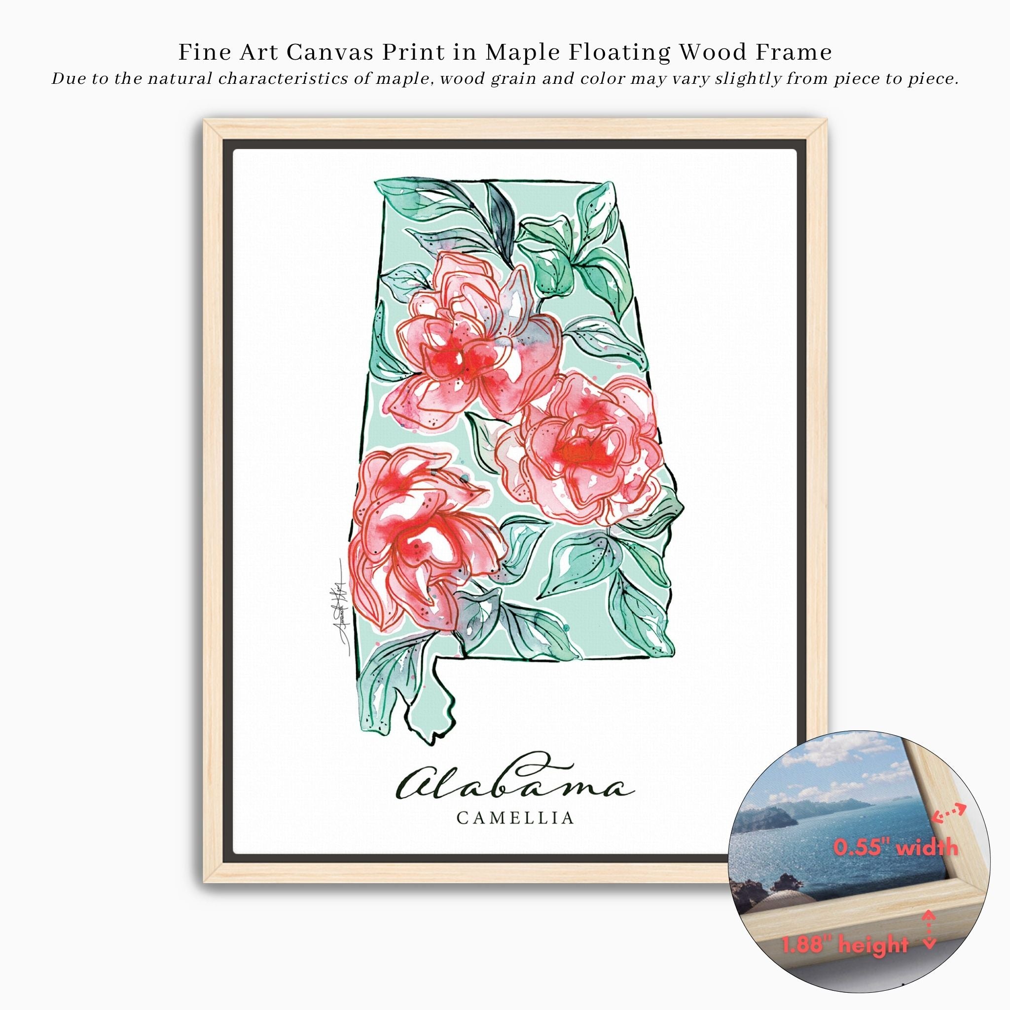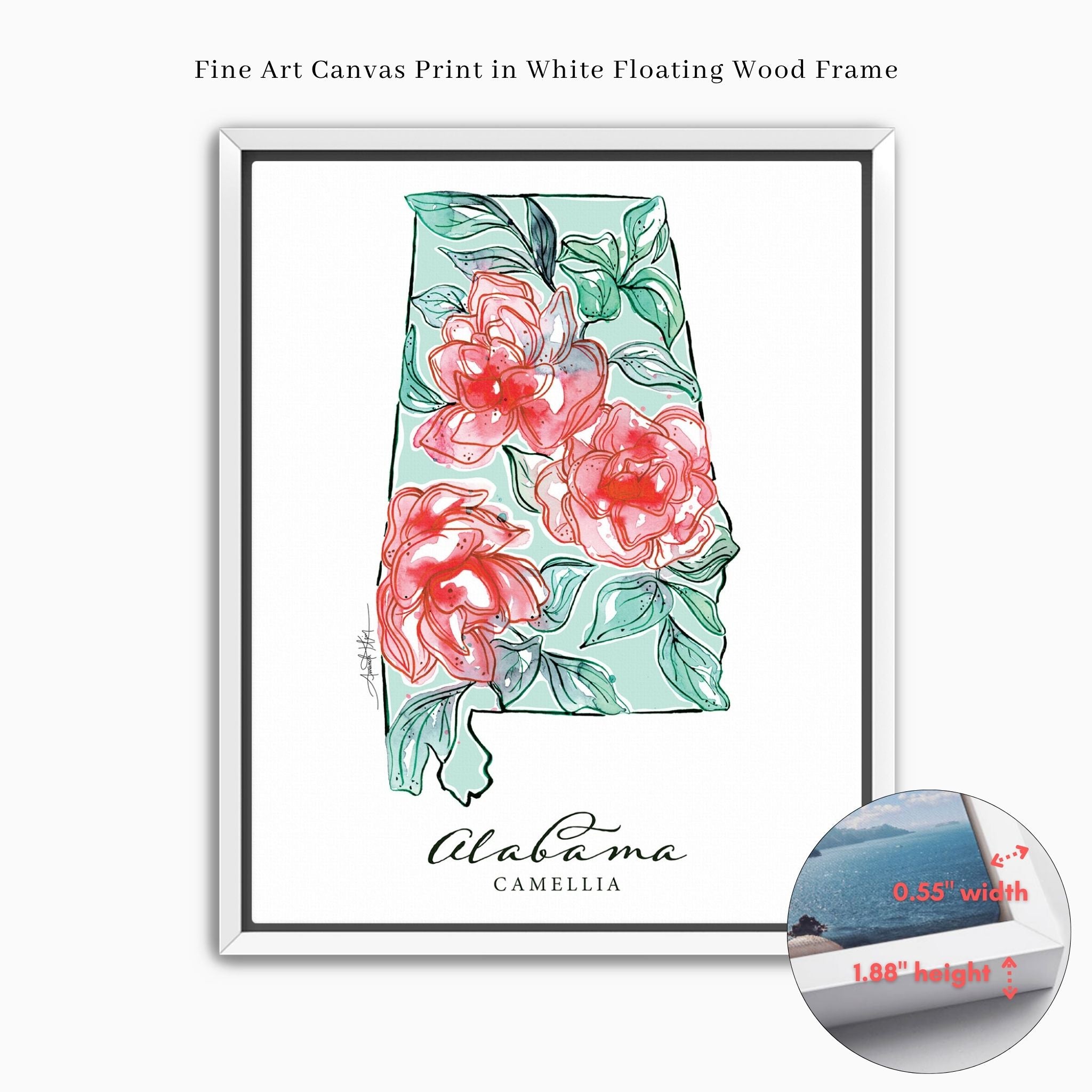 Featuring the official state flower of Alabama, the Camellia.