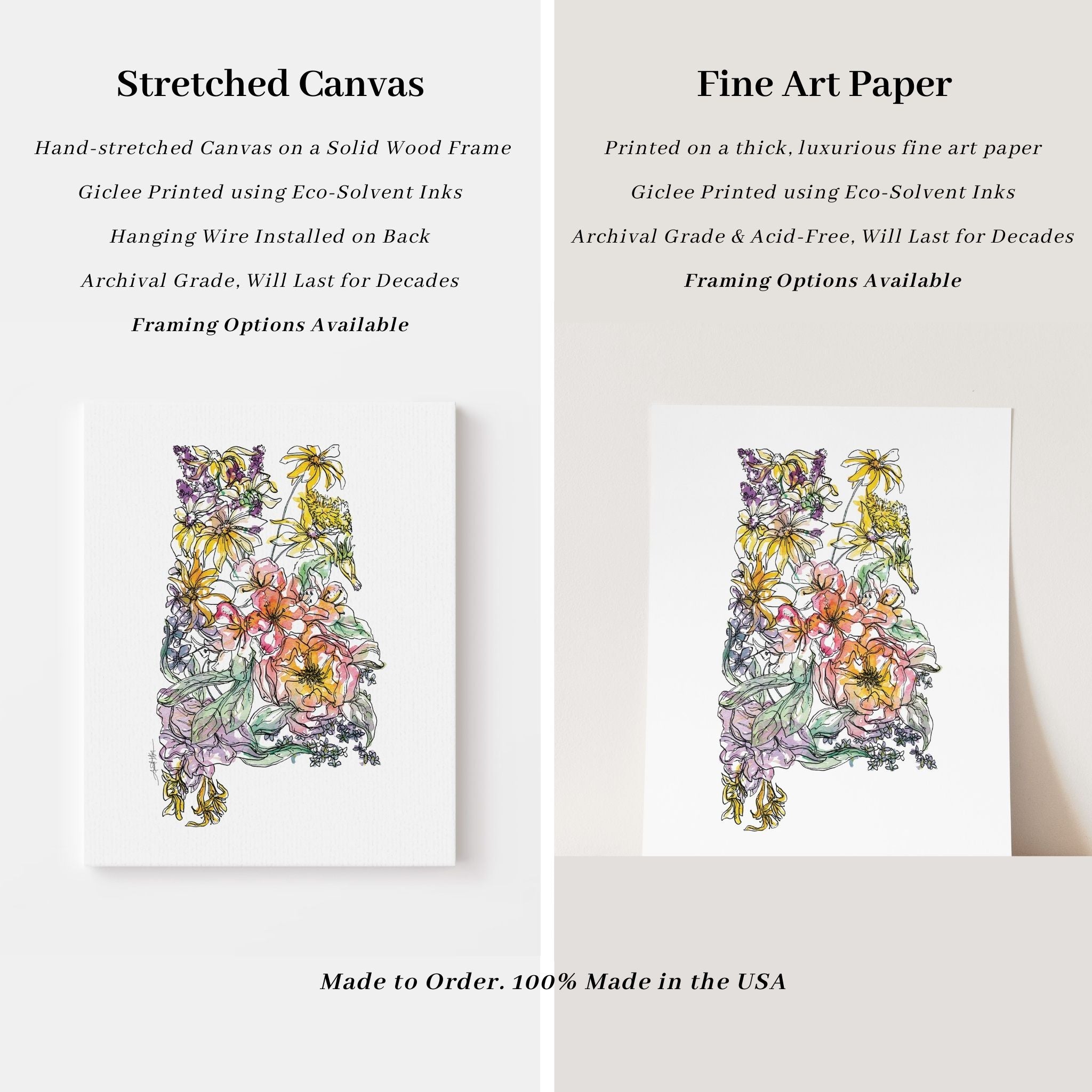 Original artwork created entirely by hand using watercolor and ink, by nationally recognized artist Amanda Klein. With over 9,000 five-star reviews, our artwork is trusted by collectors nationwide. All pieces are 100% made in the USA, printed to order, and giclée-printed using eco-solvent inks on archival-grade materials designed to last for decades. Orders ship within 2–5 business days.