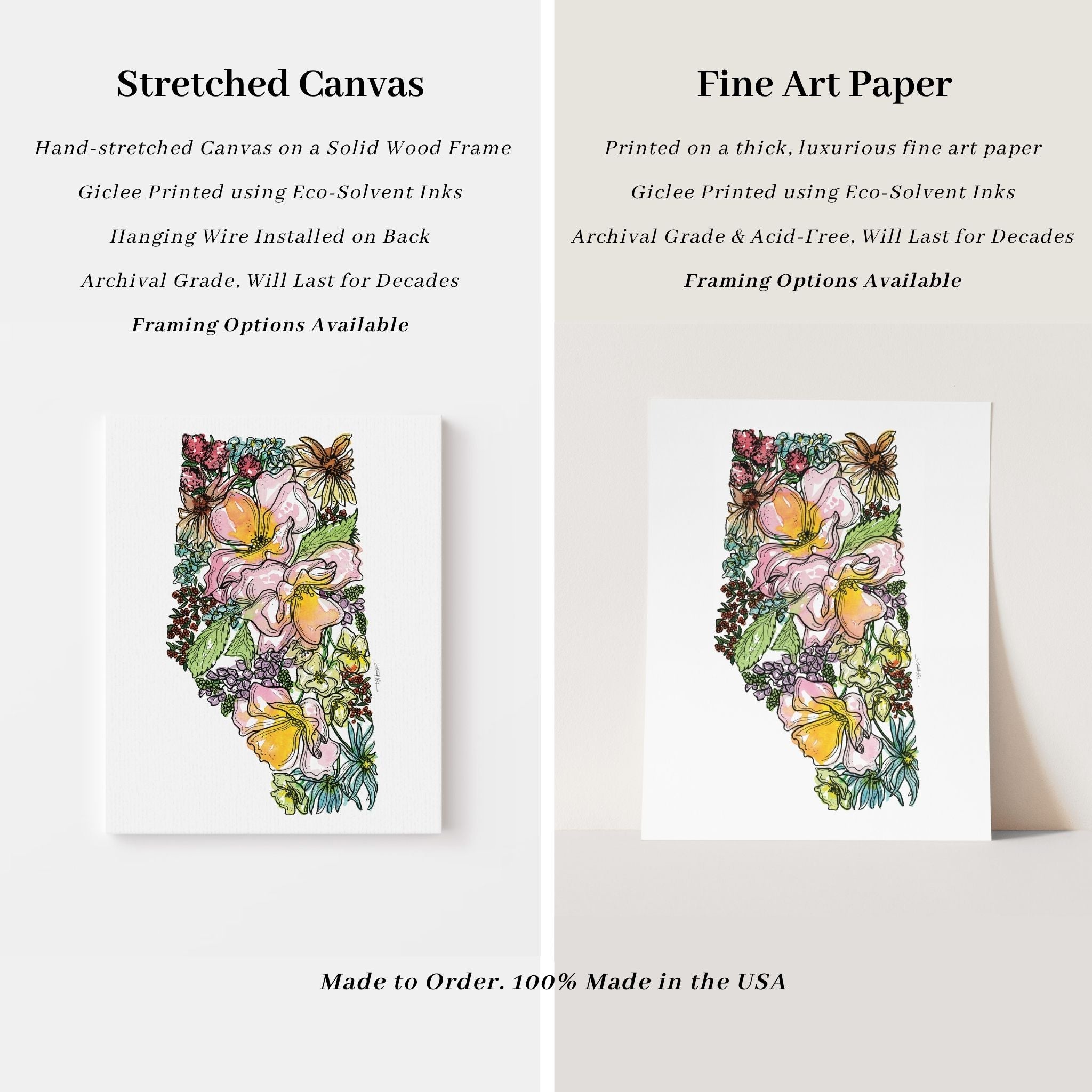 Original artwork created entirely by hand using watercolor and ink, by nationally recognized artist Amanda Klein. With over 9,000 five-star reviews, our artwork is trusted by collectors nationwide. All pieces are 100% made in the USA, printed to order, and giclée-printed using eco-solvent inks on archival-grade materials designed to last for decades. Orders ship within 2–5 business days.