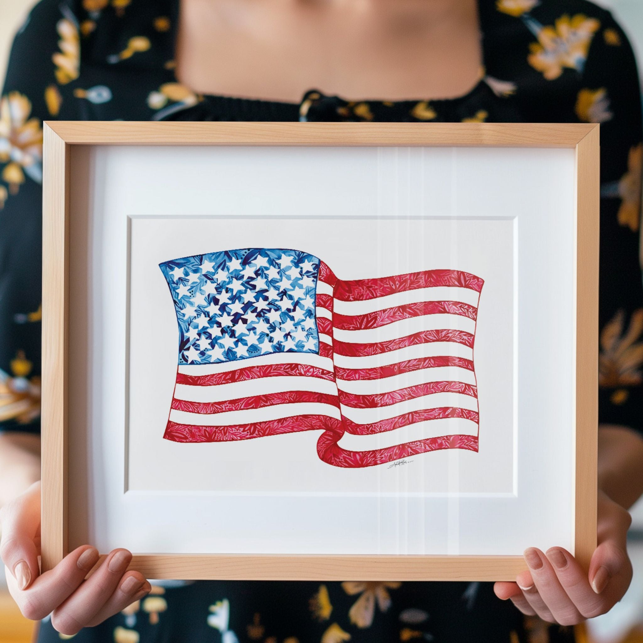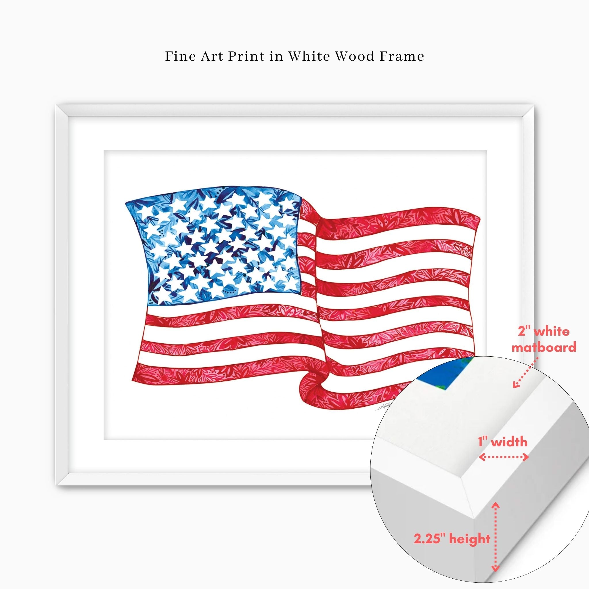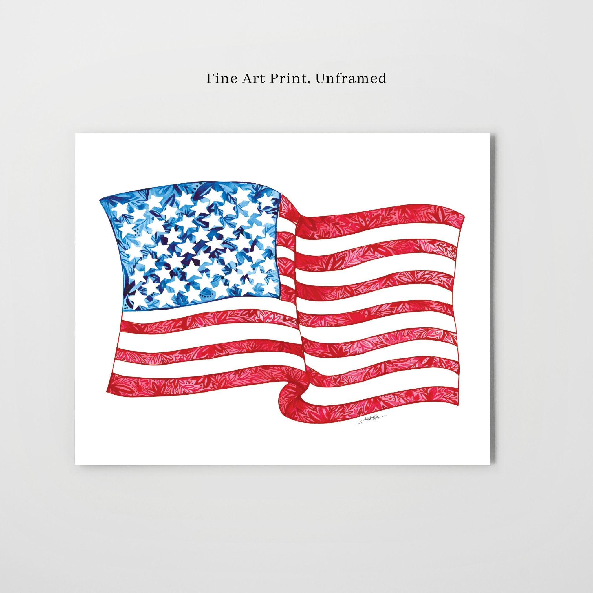 Show your love for the land of the free and the home of the brave with the majestic charm of Amanda Klein's American Flag Fine Art Print. The design of this iconic symbol blends seamlessly with multiple decor styles including modern, traditional, coastal, and farmhouse.