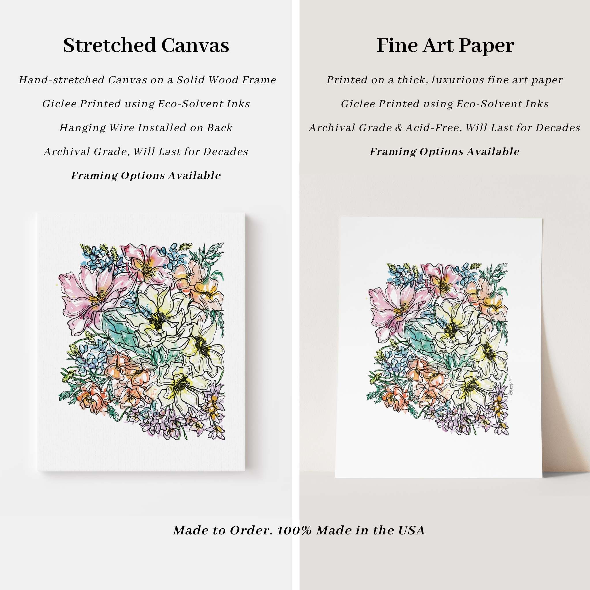 Original artwork created entirely by hand using watercolor and ink, by nationally recognized artist Amanda Klein. With over 9,000 five-star reviews, our artwork is trusted by collectors nationwide. All pieces are 100% made in the USA, printed to order, and giclée-printed using eco-solvent inks on archival-grade materials designed to last for decades. Orders ship within 2–5 business days.