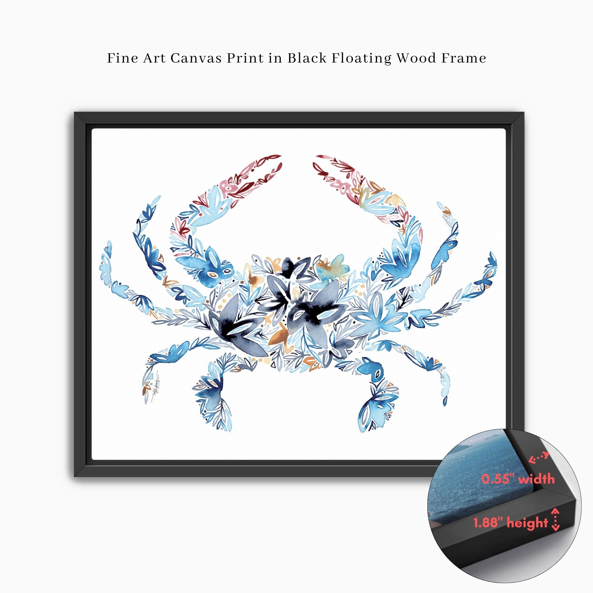 Show your love for the coastal life with the vibrant charm of the Blue Crab Fine Art Print. The design of this beloved icon blends seamlessly with multiple decor styles including modern, traditional, and farmhouse.
