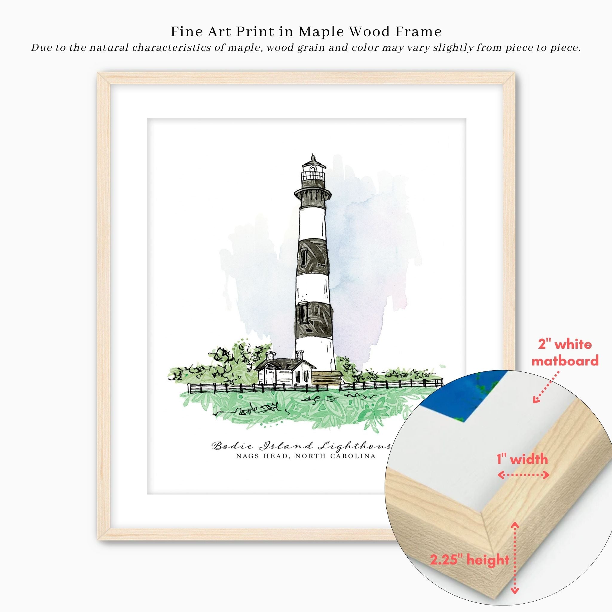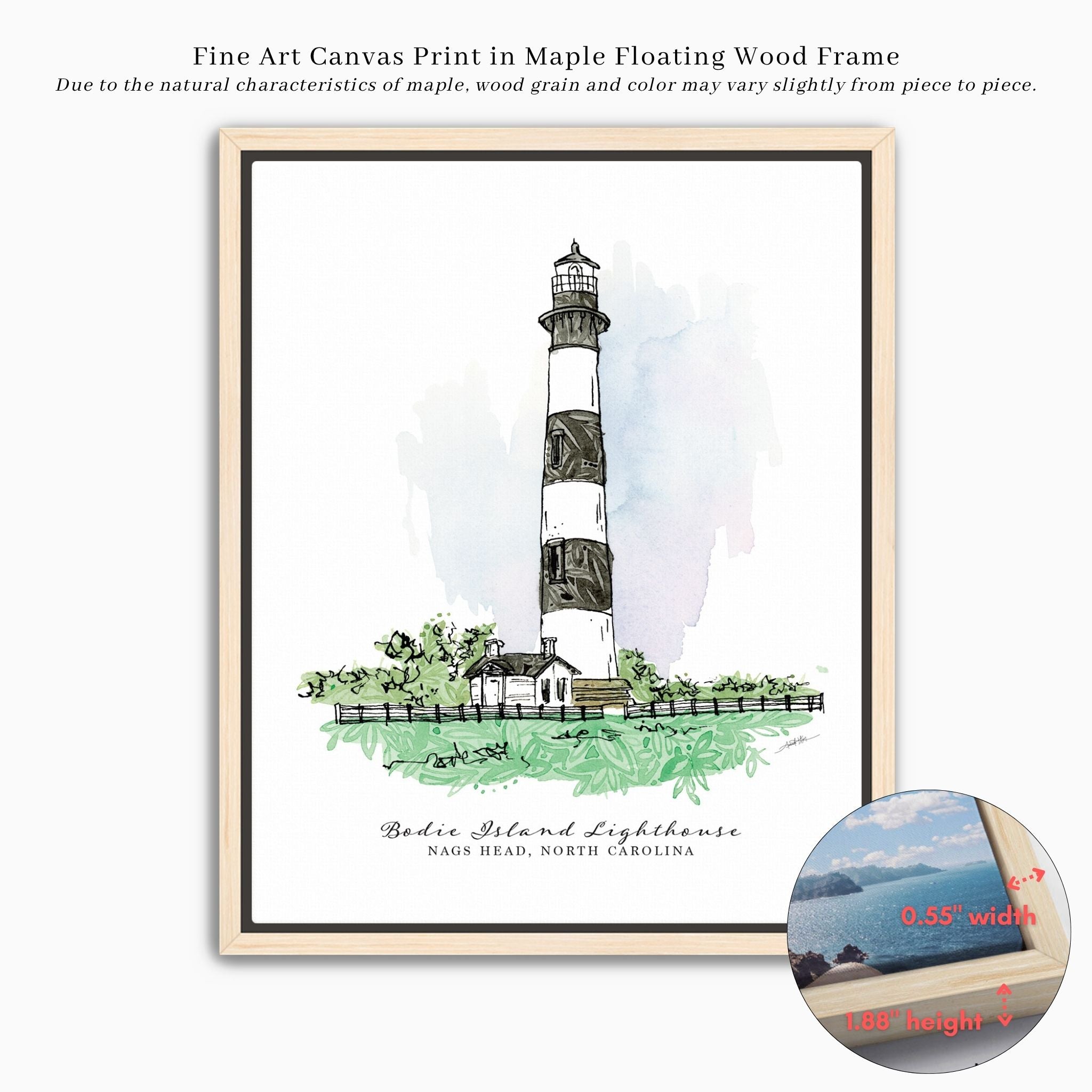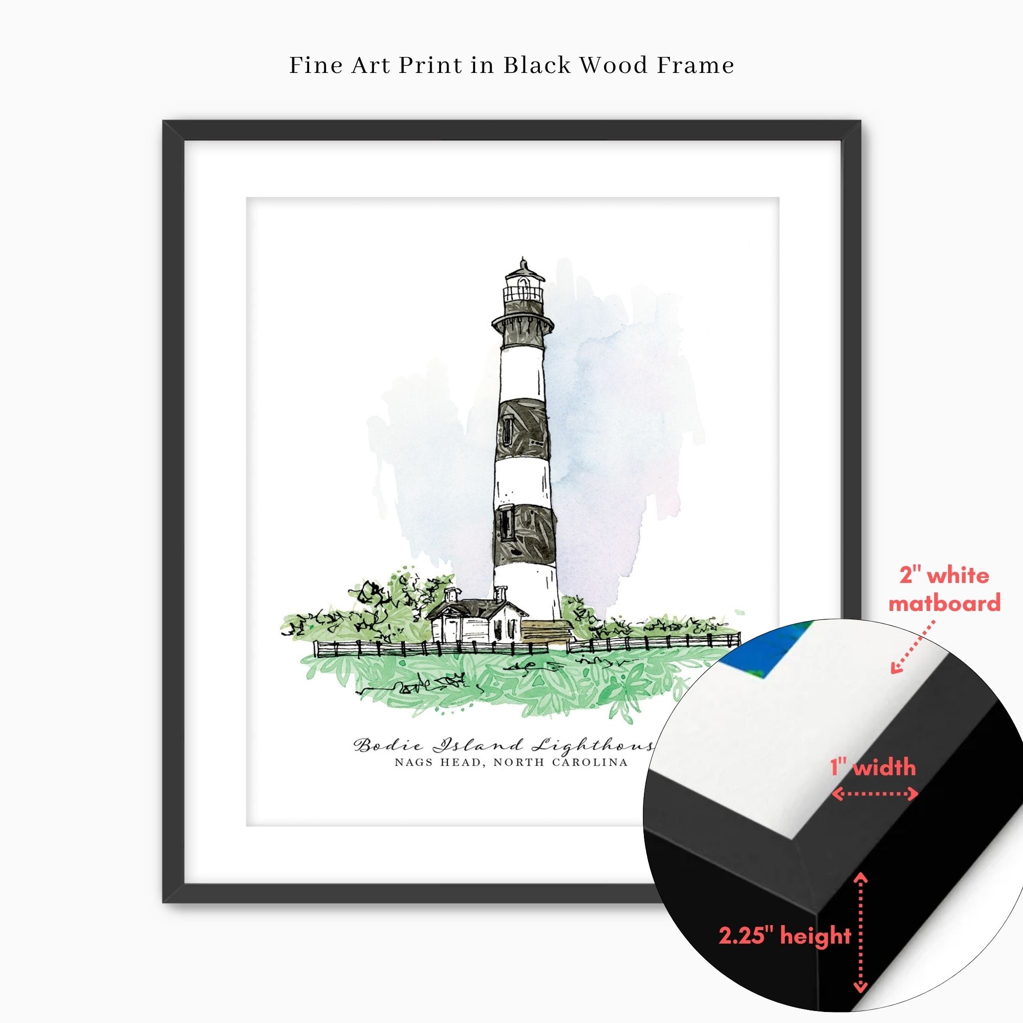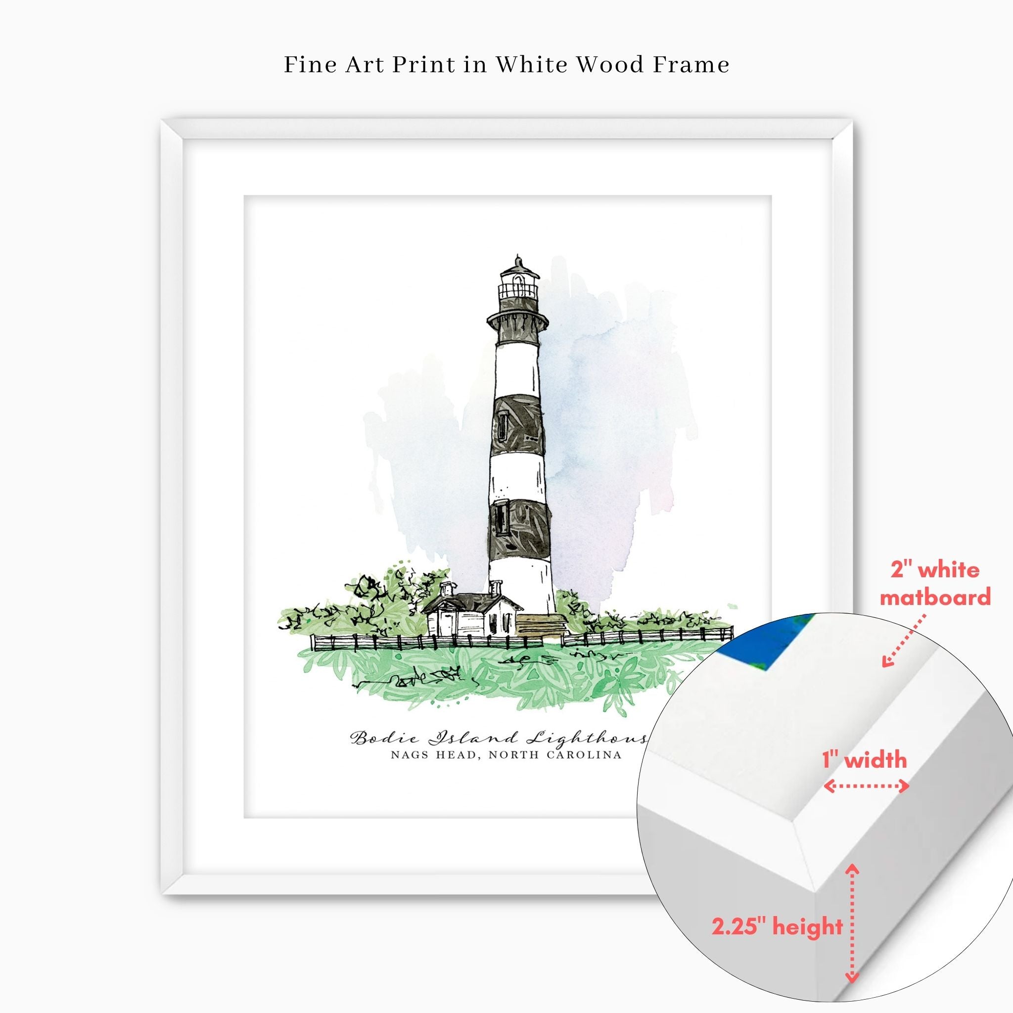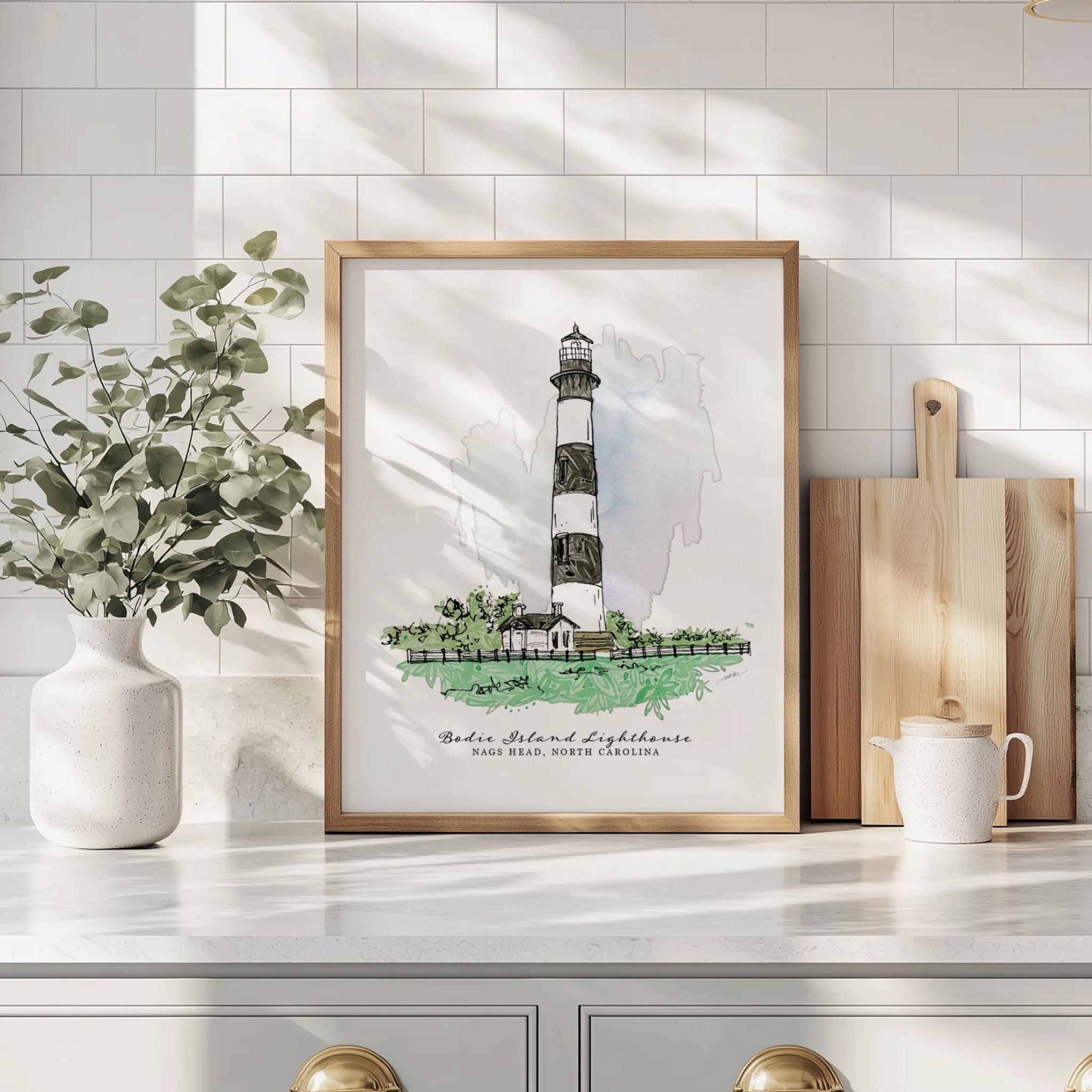 Bring a touch of the coast into your home with this fine art print featuring the iconic Bodie Island Lighthouse. Created with a serene color palette inspired by the Outer Banks.