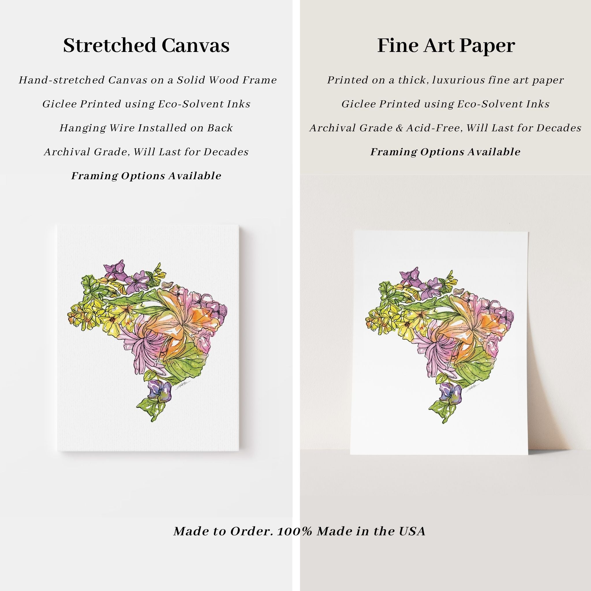 Original artwork created entirely by hand using watercolor and ink, by nationally recognized artist Amanda Klein. With over 9,000 five-star reviews, our artwork is trusted by collectors nationwide. All pieces are 100% made in the USA, printed to order, and giclée-printed using eco-solvent inks on archival-grade materials designed to last for decades. Orders ship within 2–5 business days.