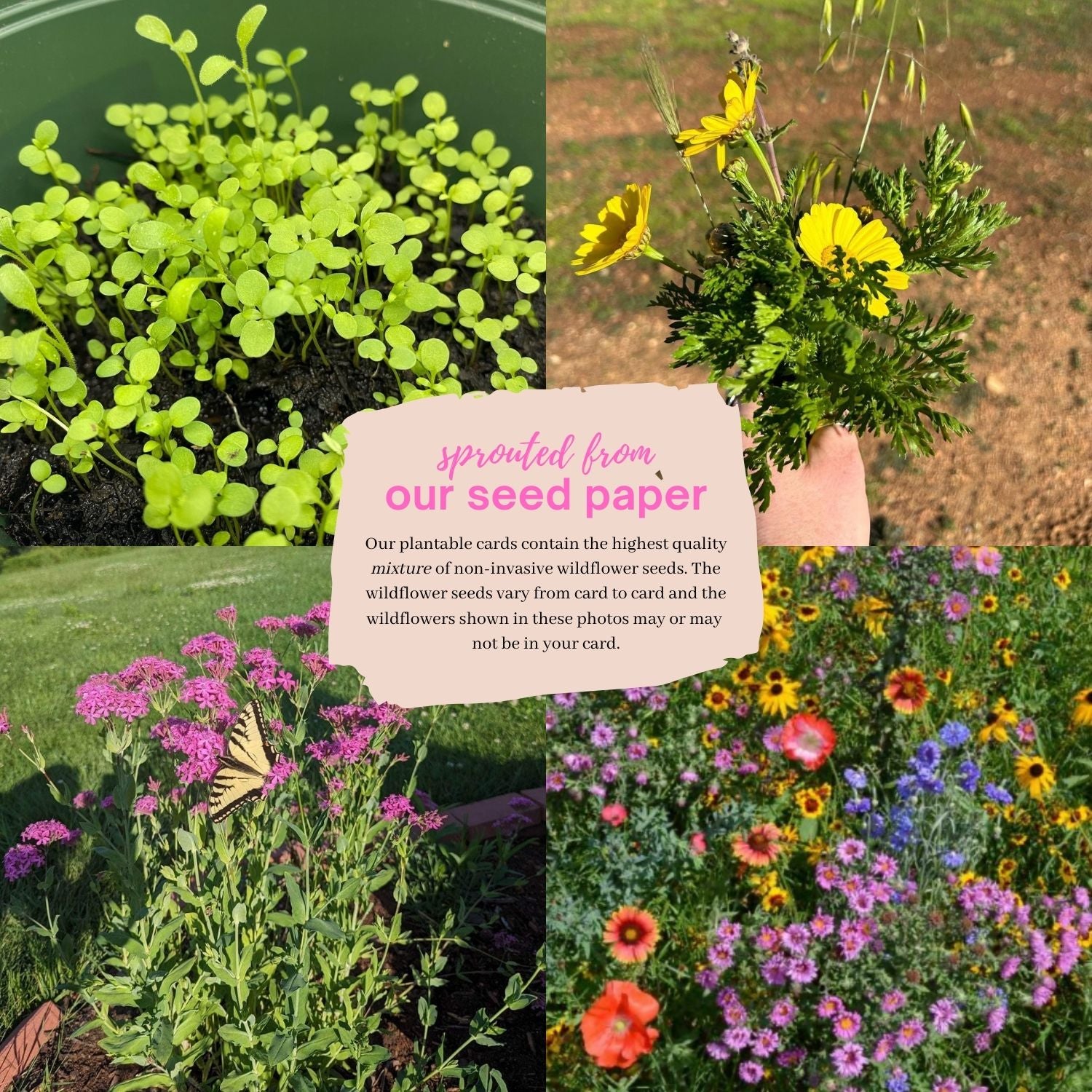 Don’t just send a greeting card, send flowers! Every plantable card is a gift unto itself and features original floral artwork created by Amanda Klein. Our plantable cards are small-batch printed on handmade, biodegradable paper that is embedded with a mix of non-invasive wildflower seeds.