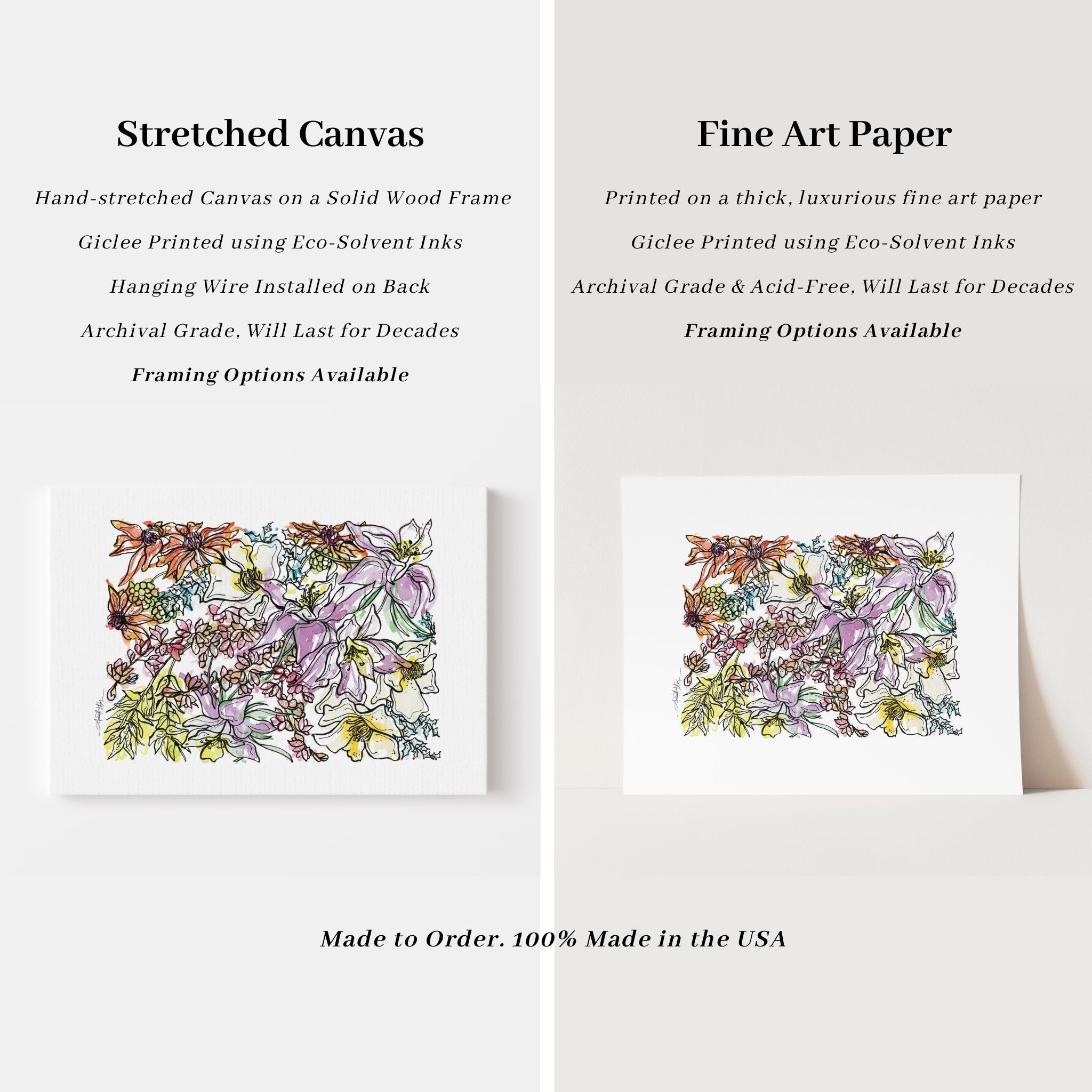 Original artwork created entirely by hand using watercolor and ink, by nationally recognized artist Amanda Klein. With over 9,000 five-star reviews, our artwork is trusted by collectors nationwide. All pieces are 100% made in the USA, printed to order, and giclée-printed using eco-solvent inks on archival-grade materials designed to last for decades. Orders ship within 2–5 business days.
