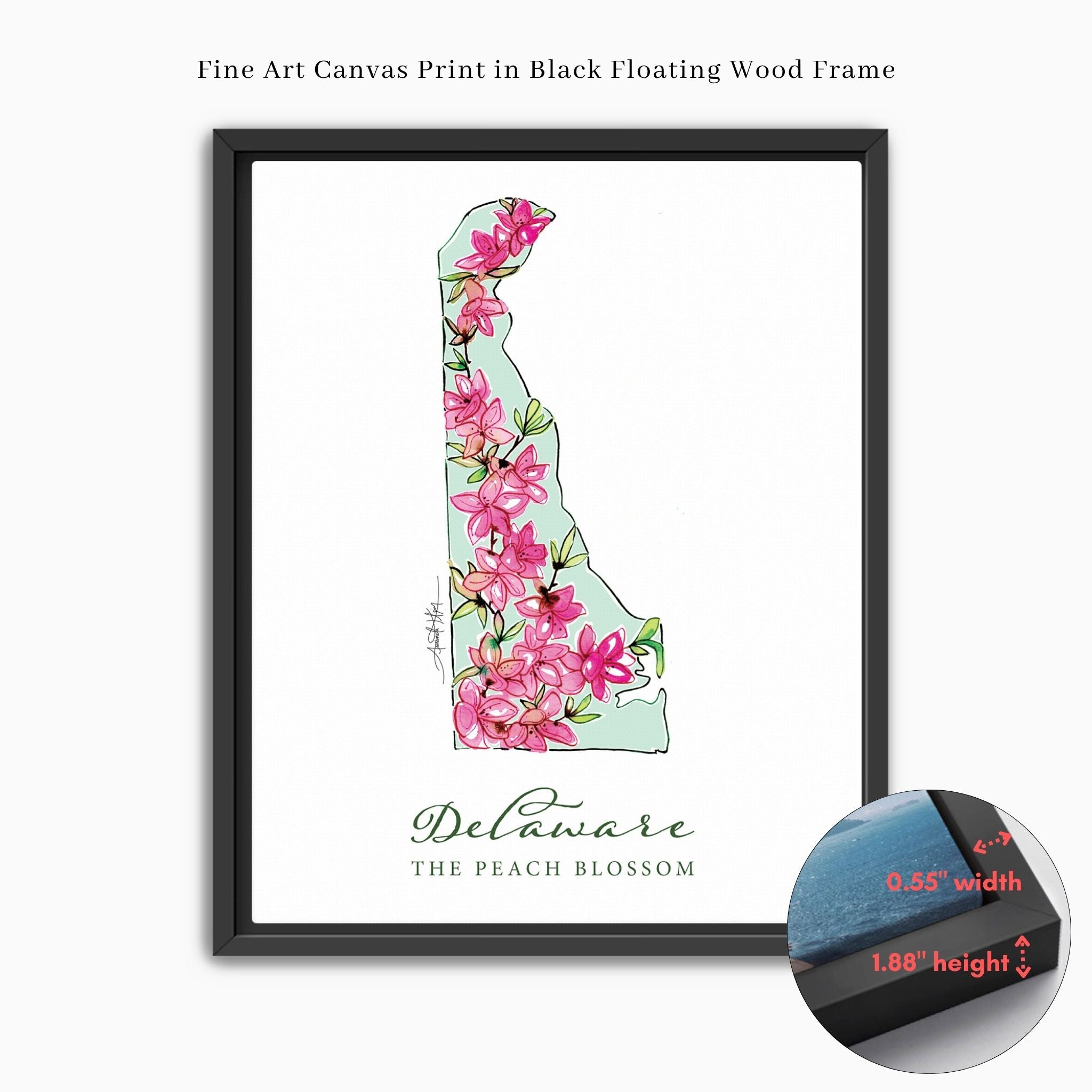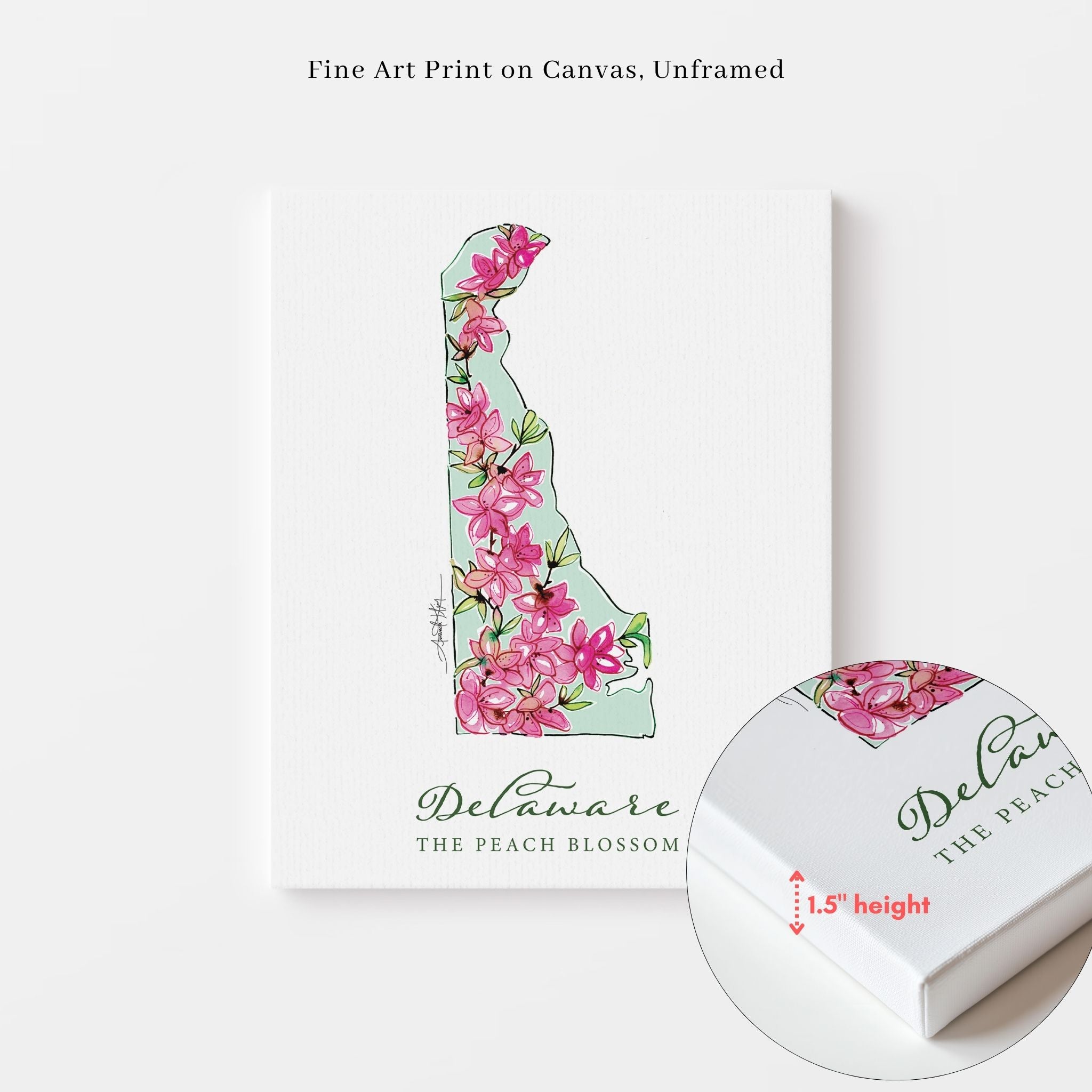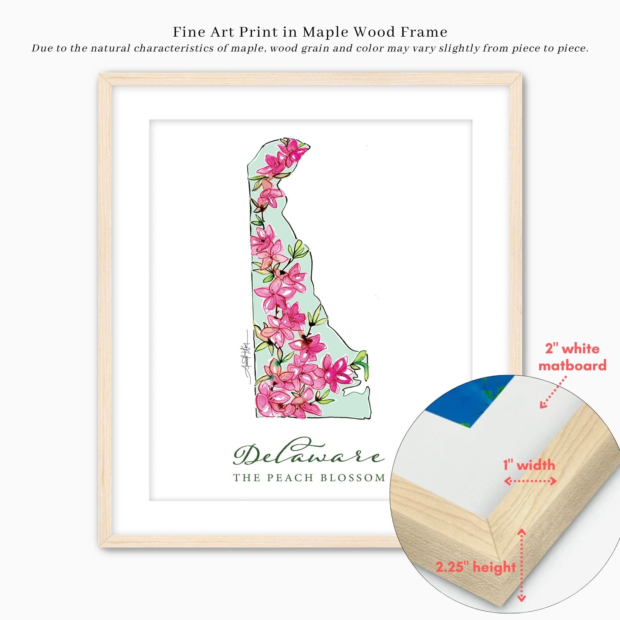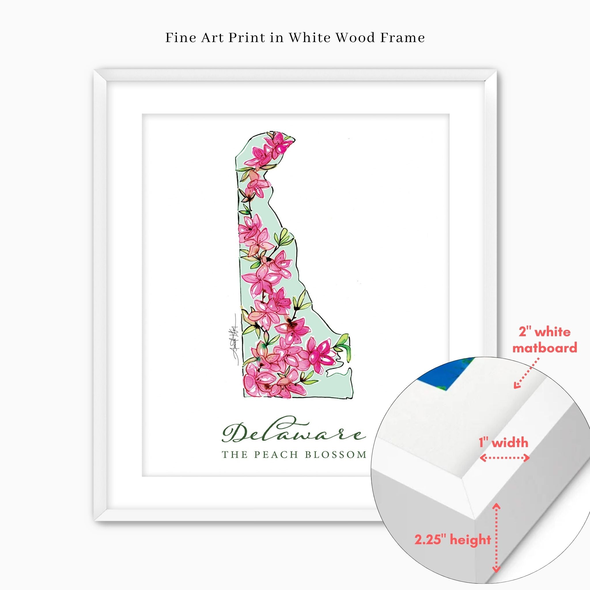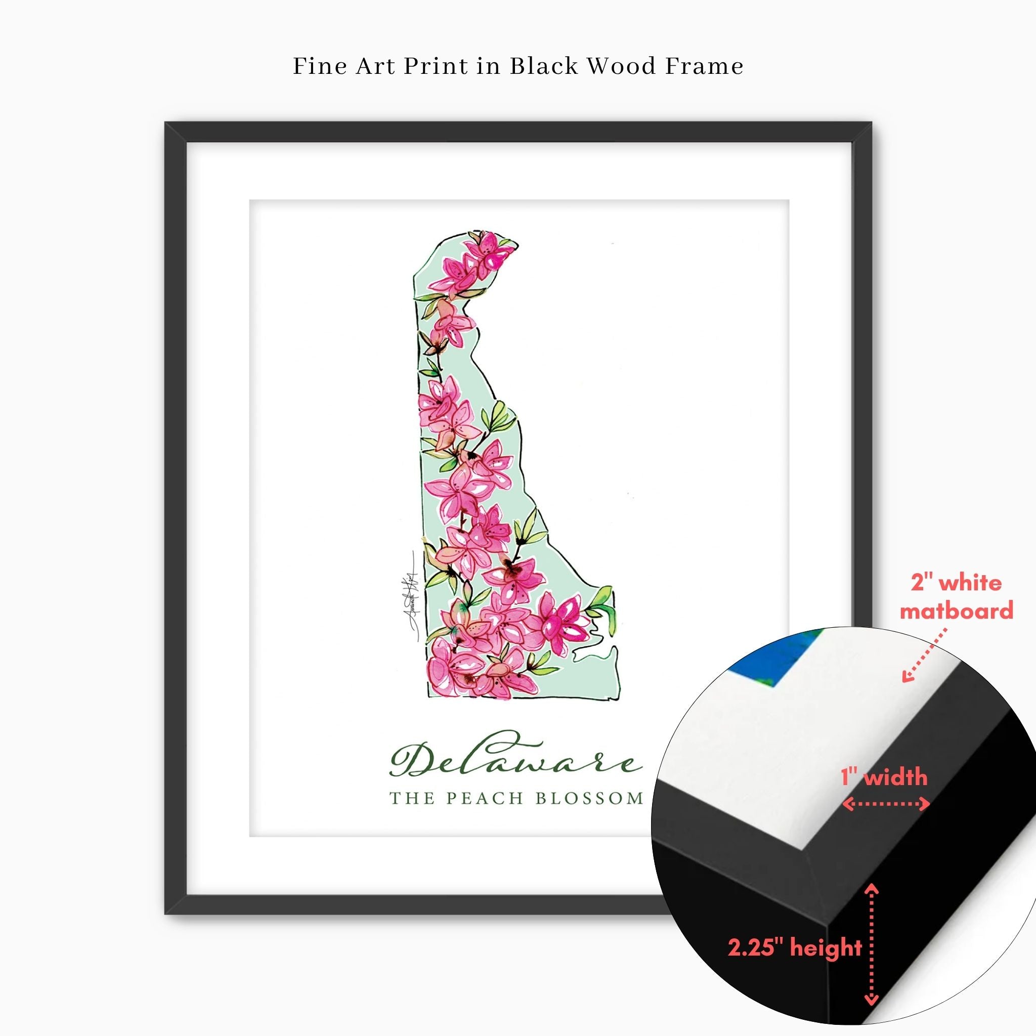 Featuring the official state flower of Delaware, the Peach Blossom.