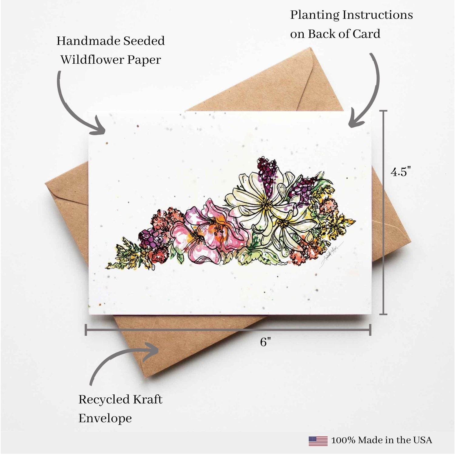 Don’t just send a greeting card, send flowers! Every plantable card is a gift unto itself and features original floral artwork created by Amanda Klein. Our plantable cards are small-batch printed on handmade, biodegradable paper that is embedded with a mix of non-invasive wildflower seeds.