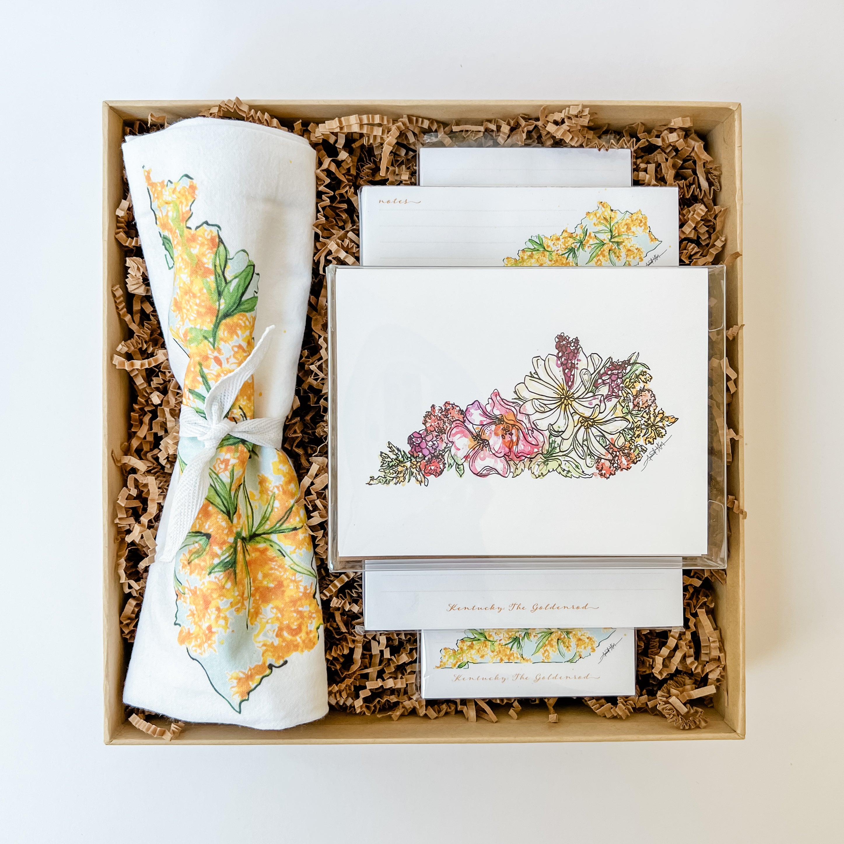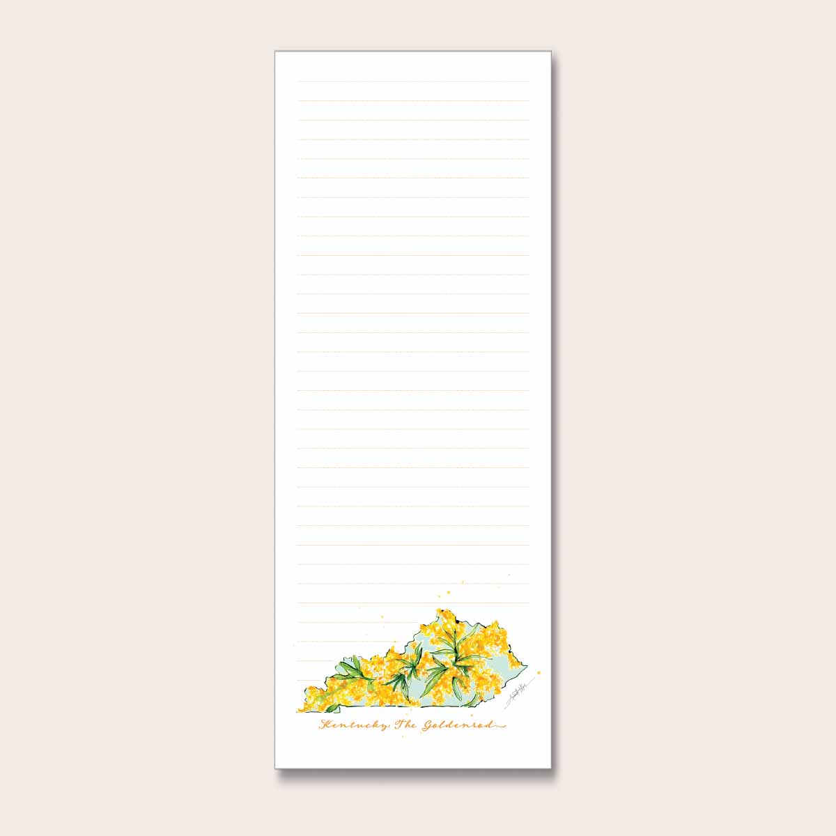 ✨ Flour Sack Towel, Desk Notepad, and Refrigerator Notepad all feature the Kentucky State Flower, the Goldenrod