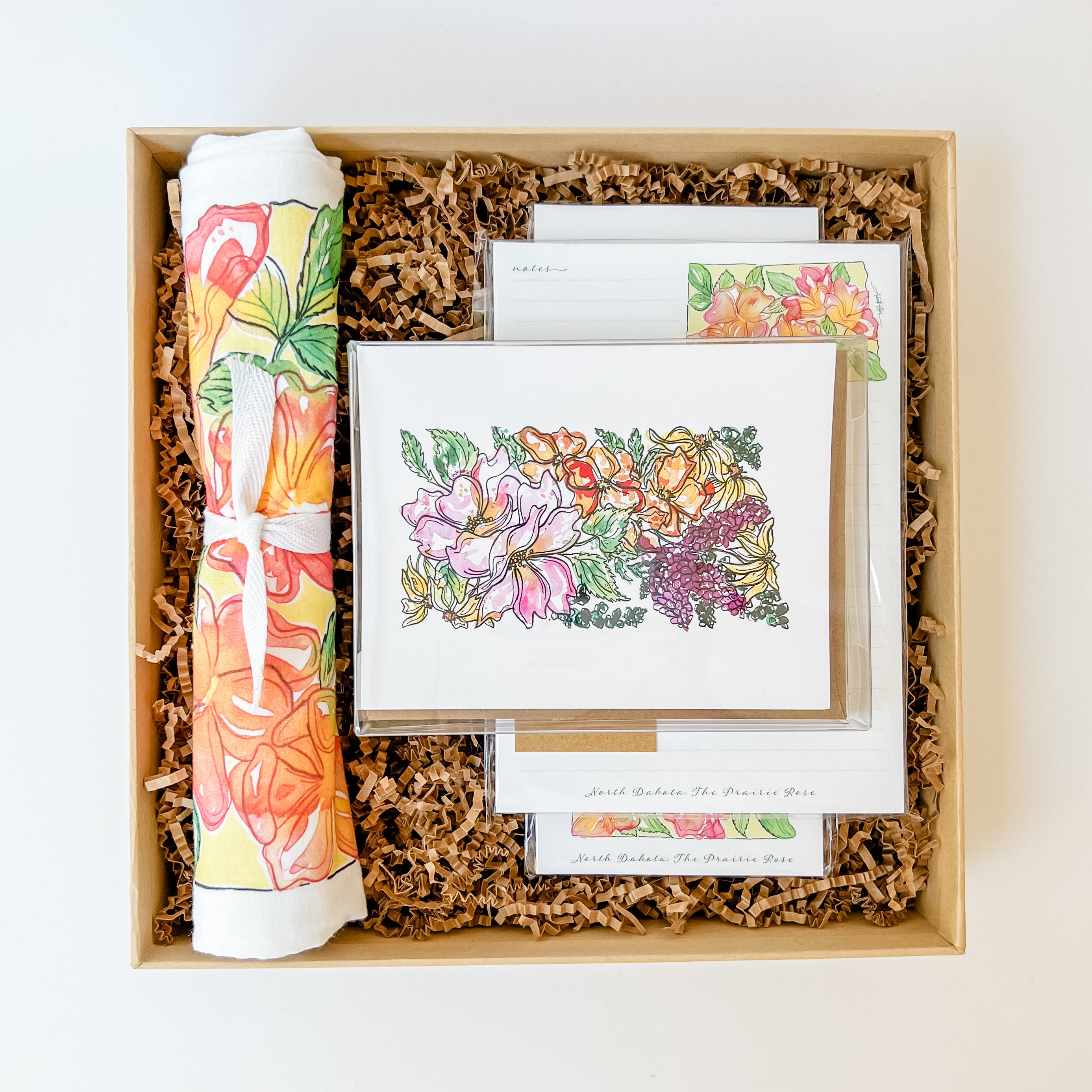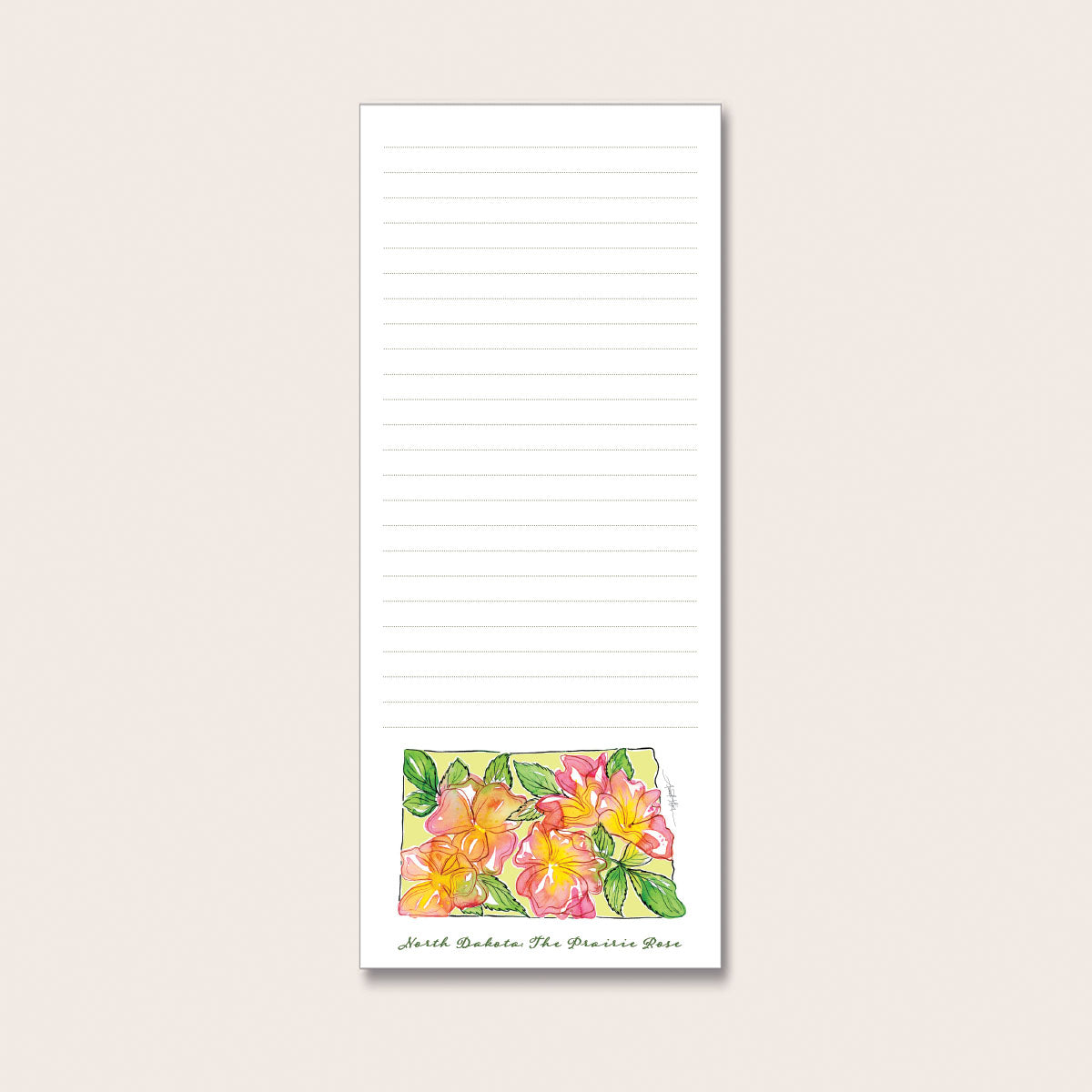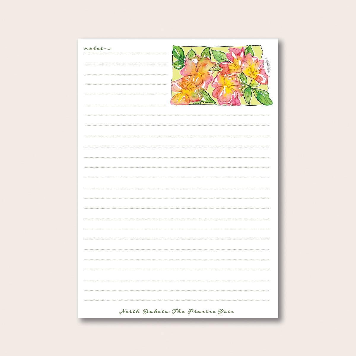 ✨ Flour Sack Towel, Desk Notepad, and Refrigerator Notepad all feature the North Dakota State Flower, the Wild Prairie Rose.