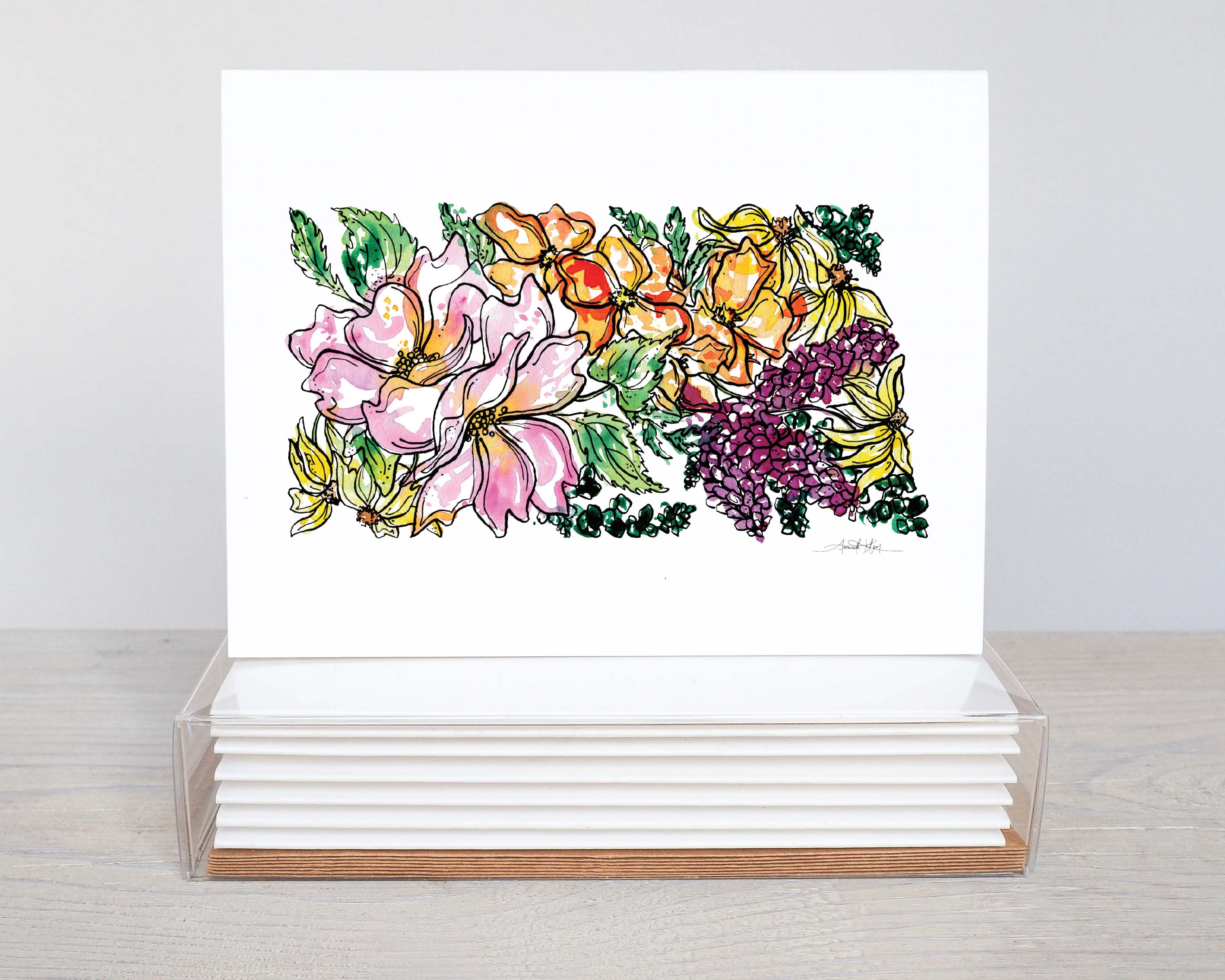 - Boxed set of 8 notecards, 8 kraft envelopes, and 8 envelope closure stickers